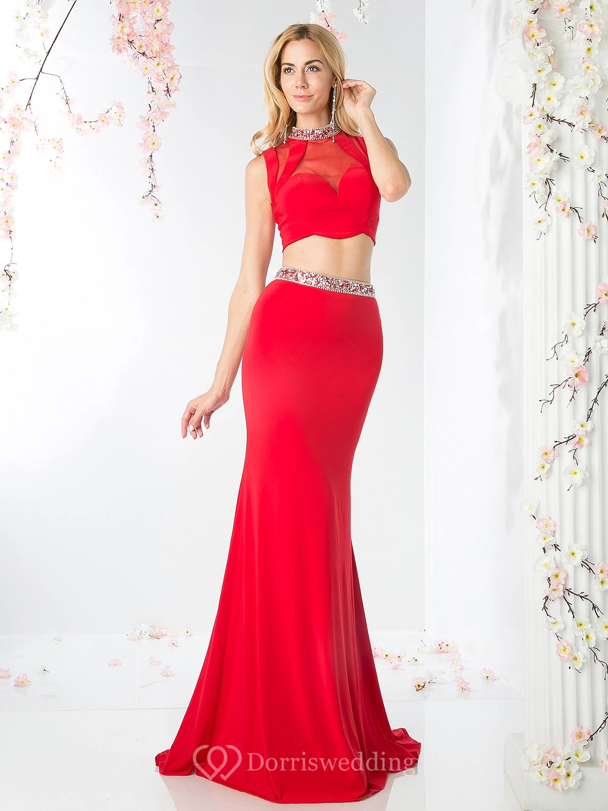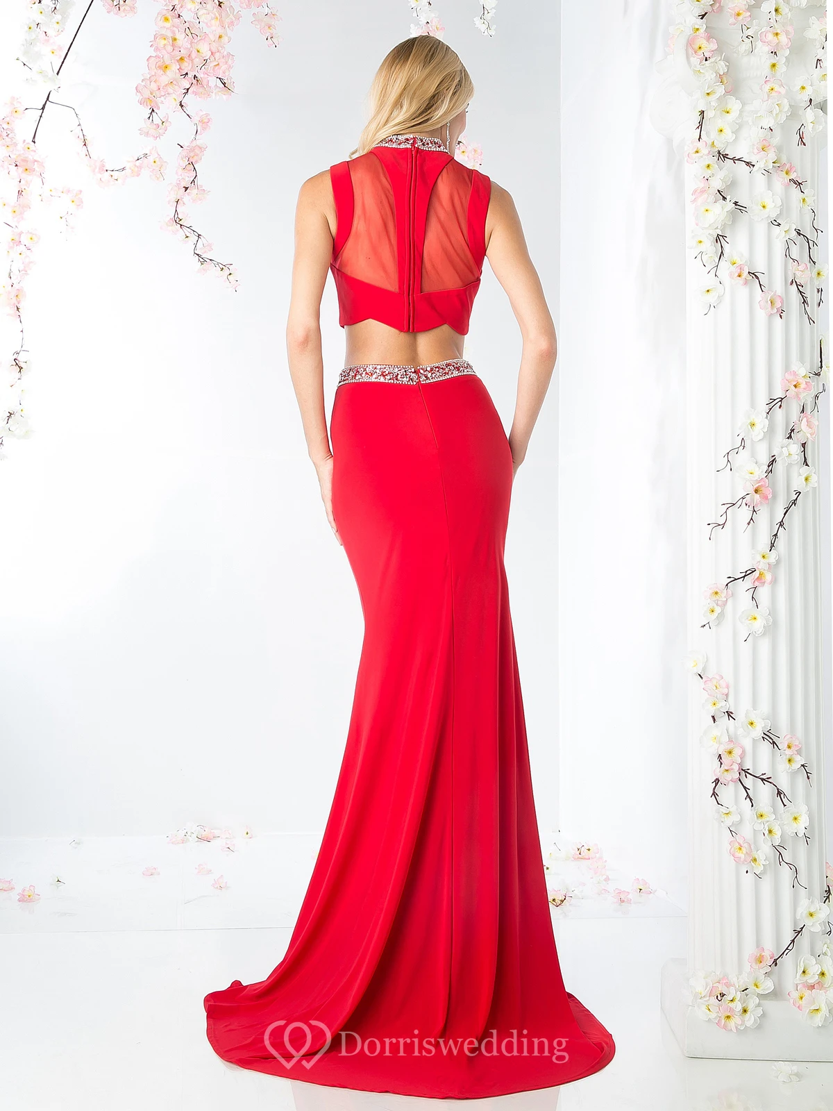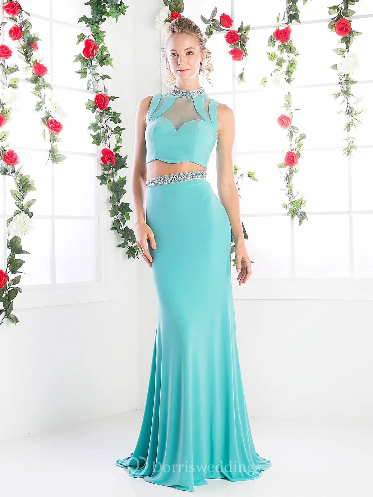 Sheath Maxi High Neck Sleeveless Jersey Zipper Dress With Beading