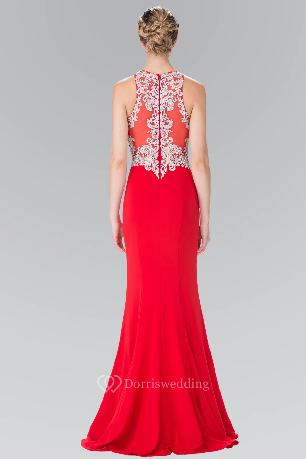 Sheath Maxi Jewel-Neck Sleeveless Jersey Illusion Dress With Beading And Appliques