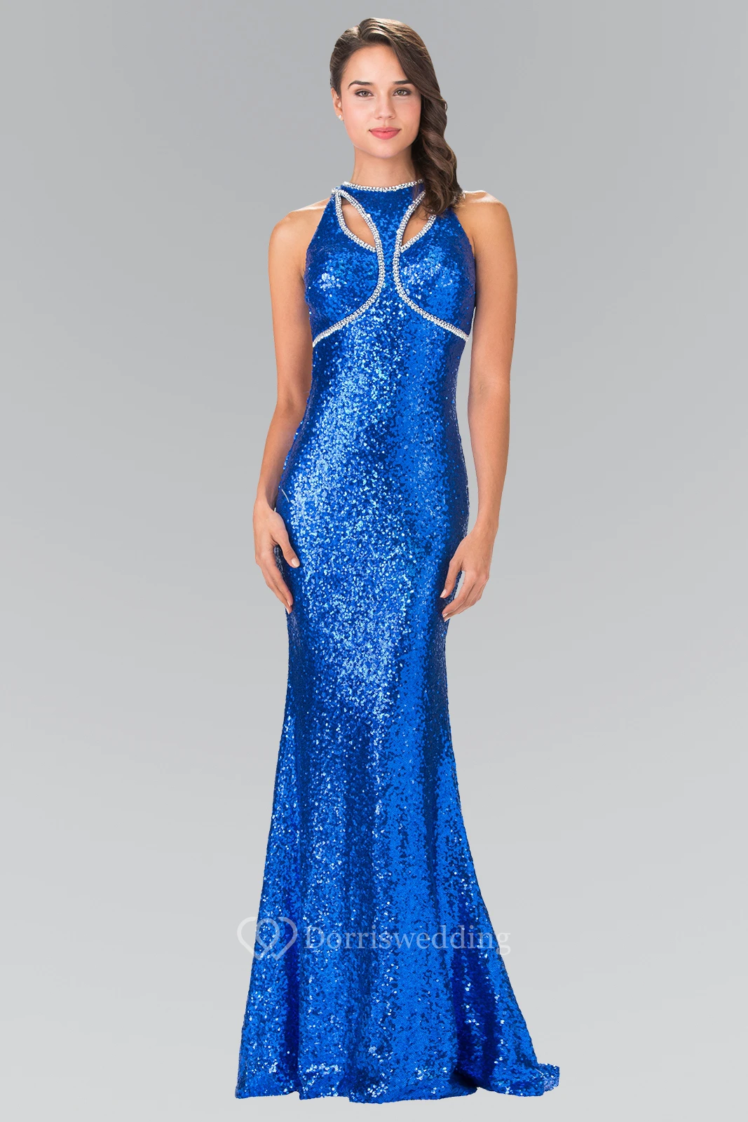 Sheath Maxi Jewel-Neck Sleeveless Sequins Keyhole Dress
