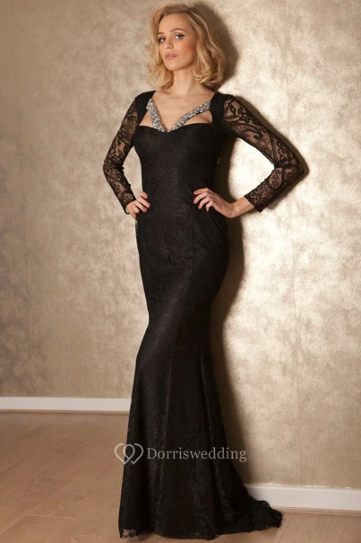 Sheath Maxi Long-Sleeve Beaded Lace Prom Dress