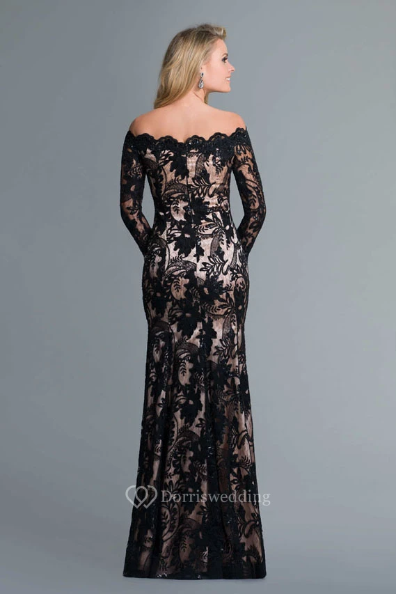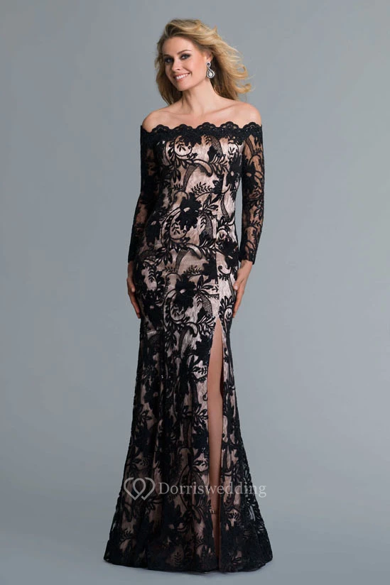 Sheath Maxi Off-The-Shoulder Long Sleeve Lace Zipper Dress With Split Front