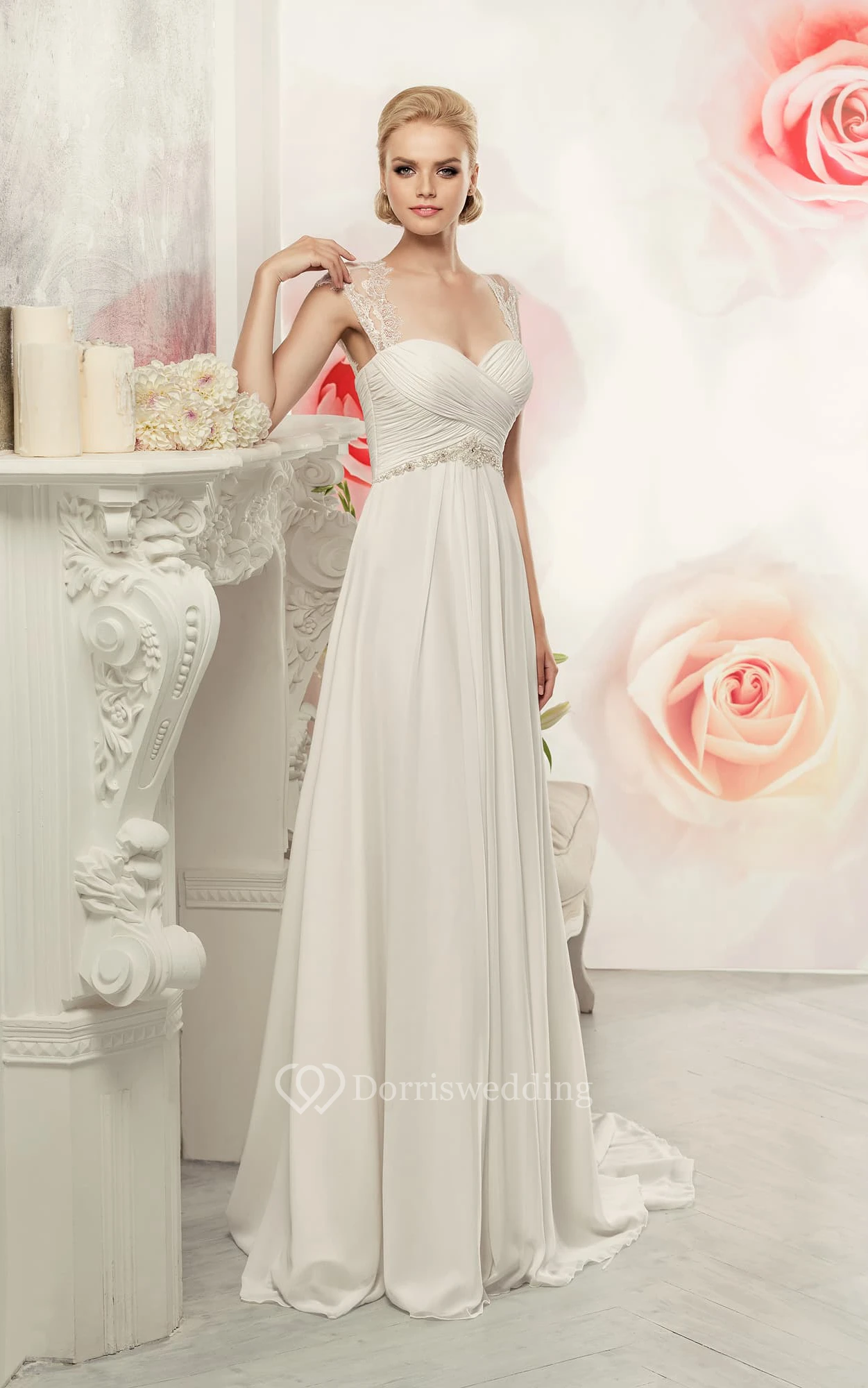 • Hemline/Train: Floor-length, Sweep/Brush Train