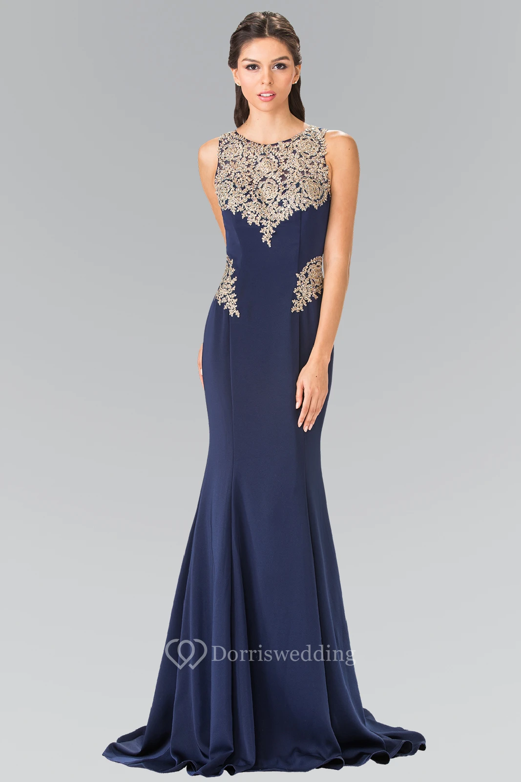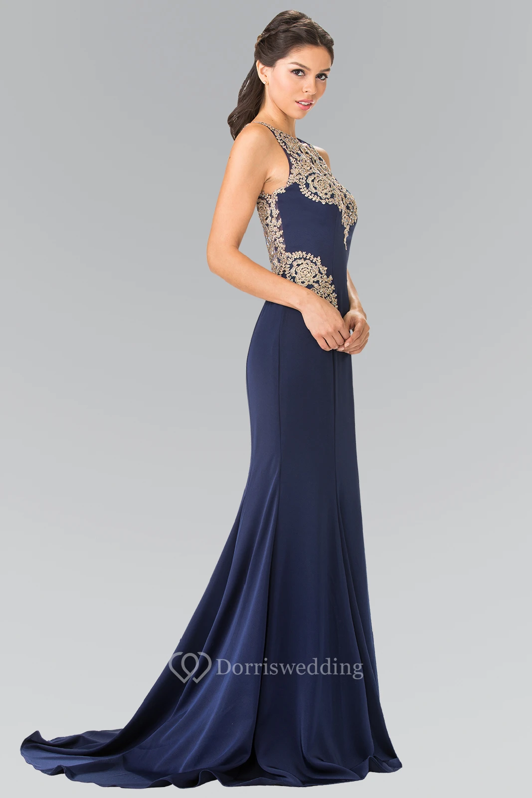 Sheath Maxi Scoop-Neck Sleeveless Jersey Brush Train Dress With Beading