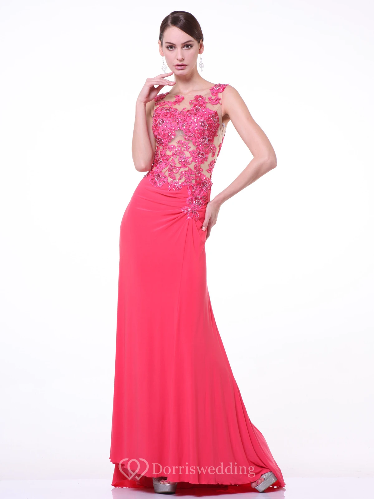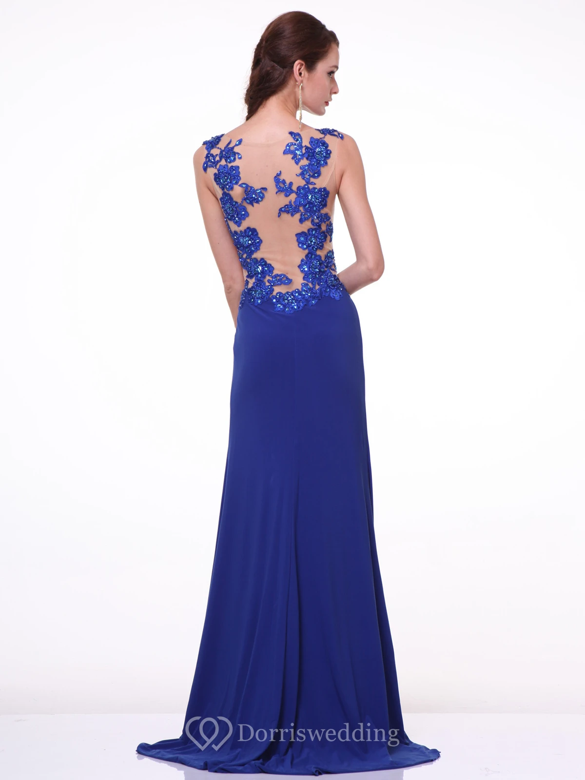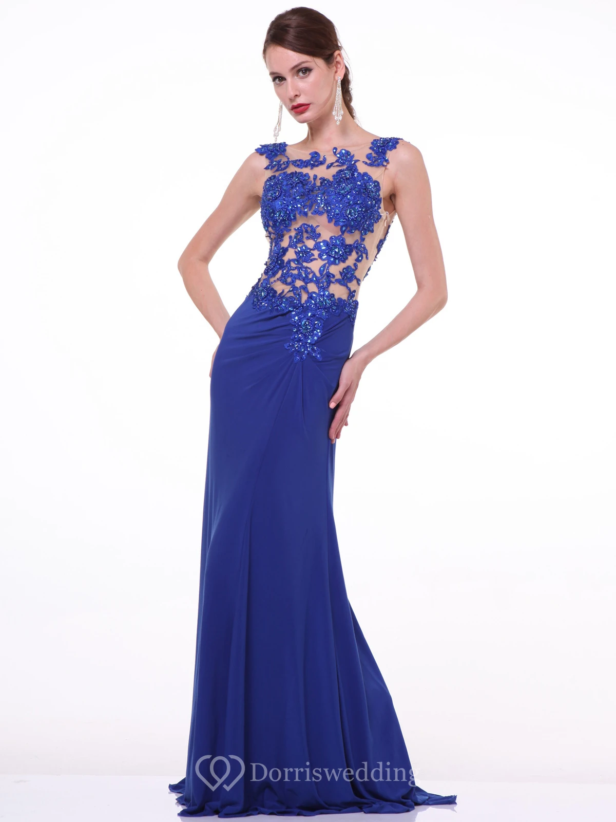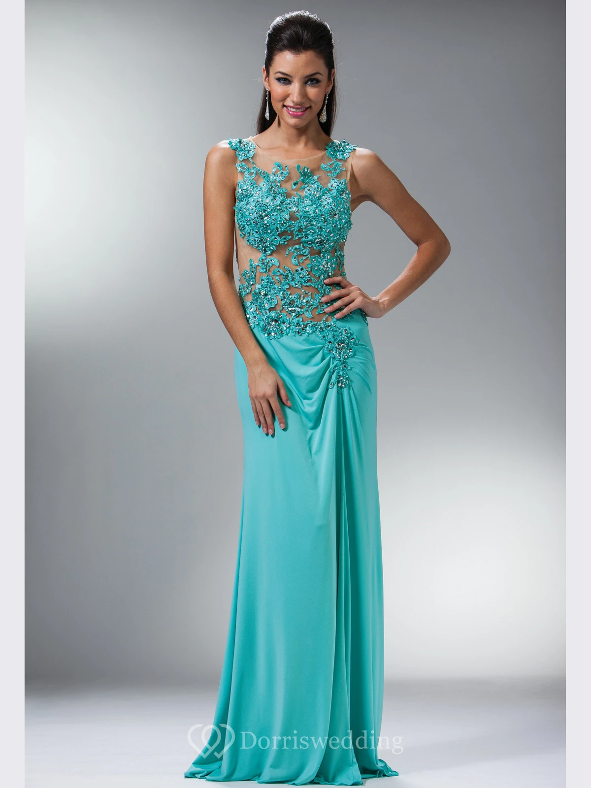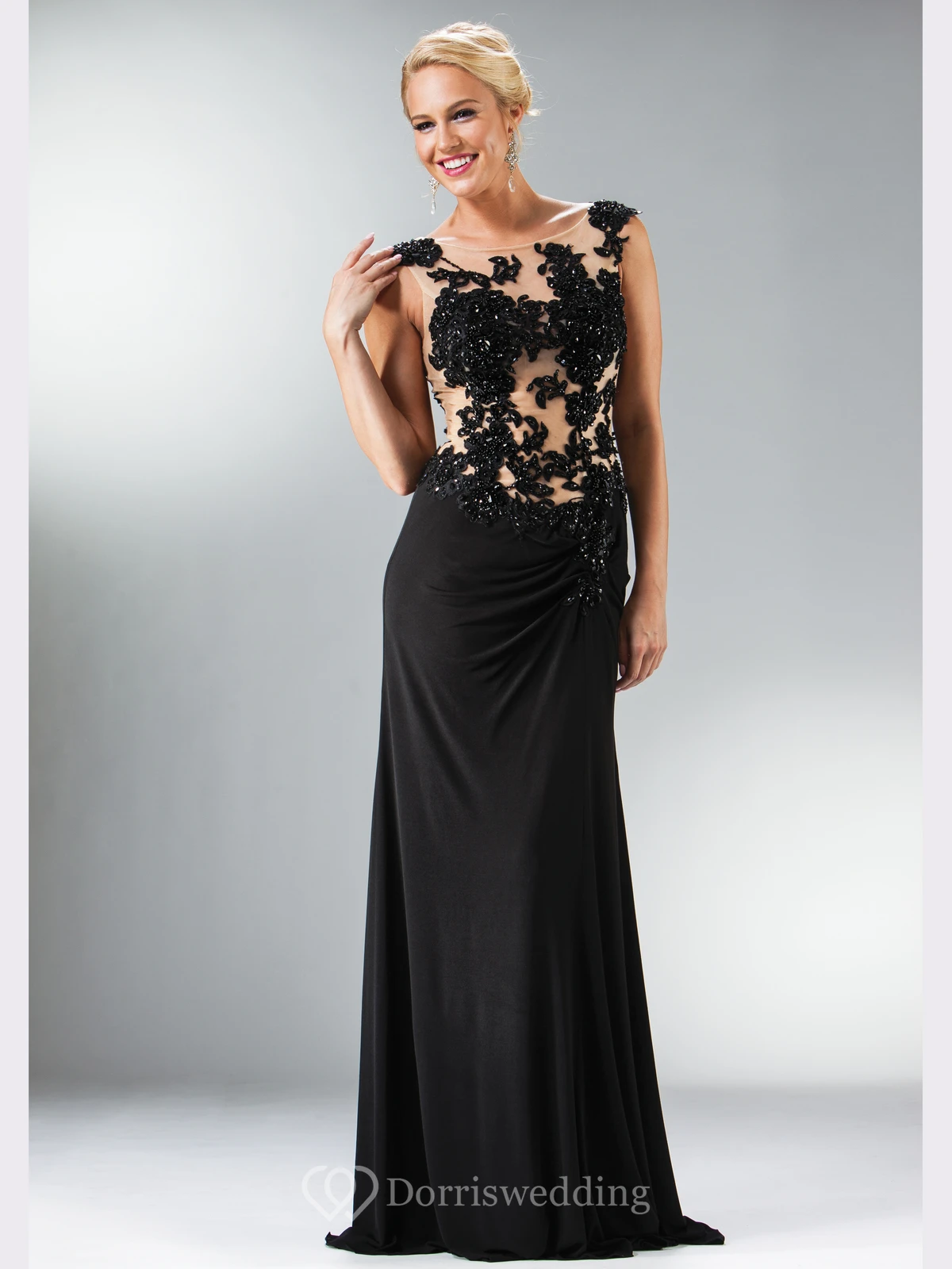 Sheath Maxi Scoop-Neck Sleeveless Jersey Illusion Dress With Appliques And Beading