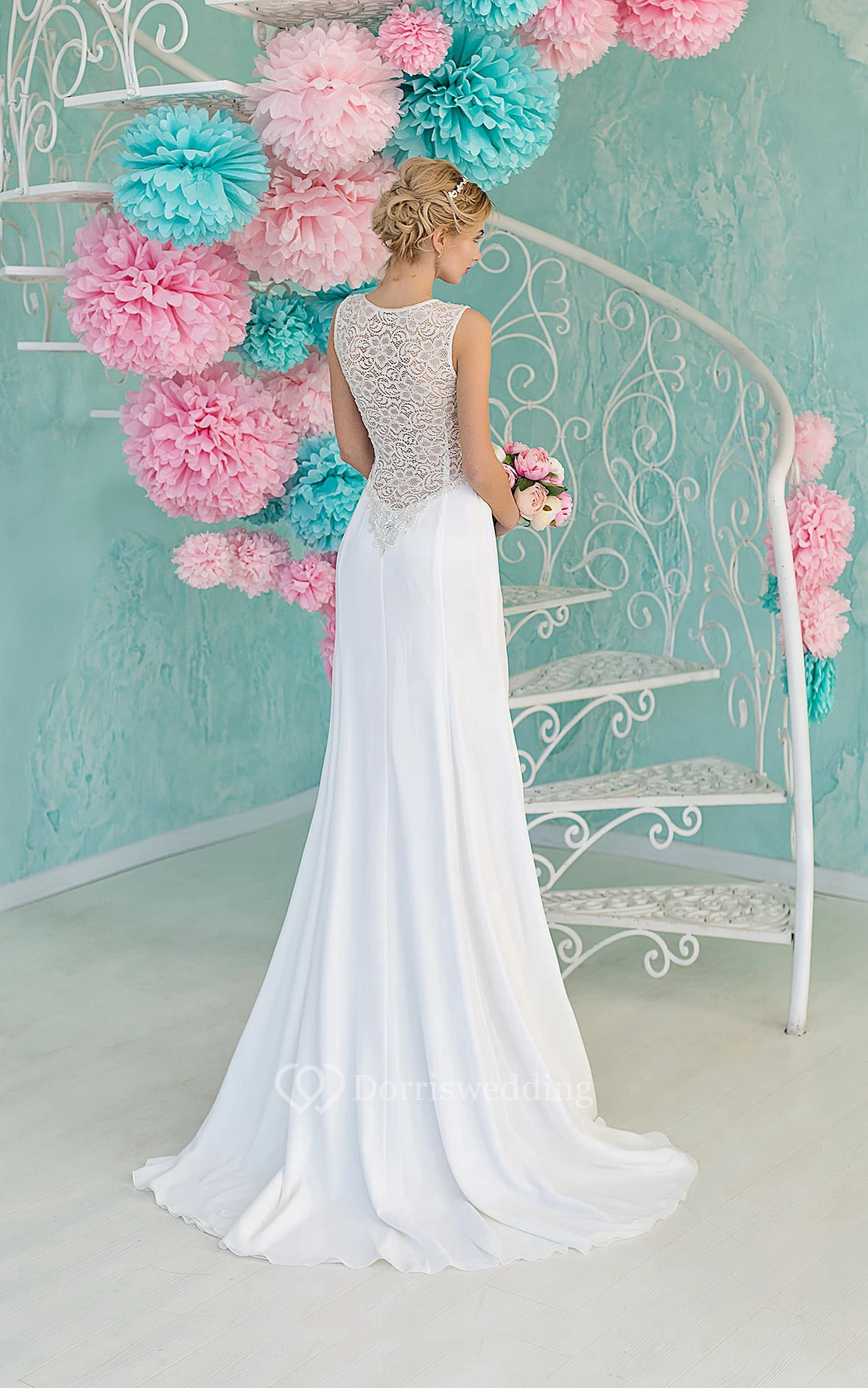 Sheath Maxi Scoop Sleeveless Empire Illusion Chiffon Dress With Lace And Beading