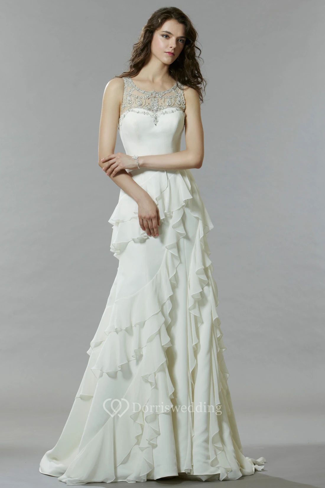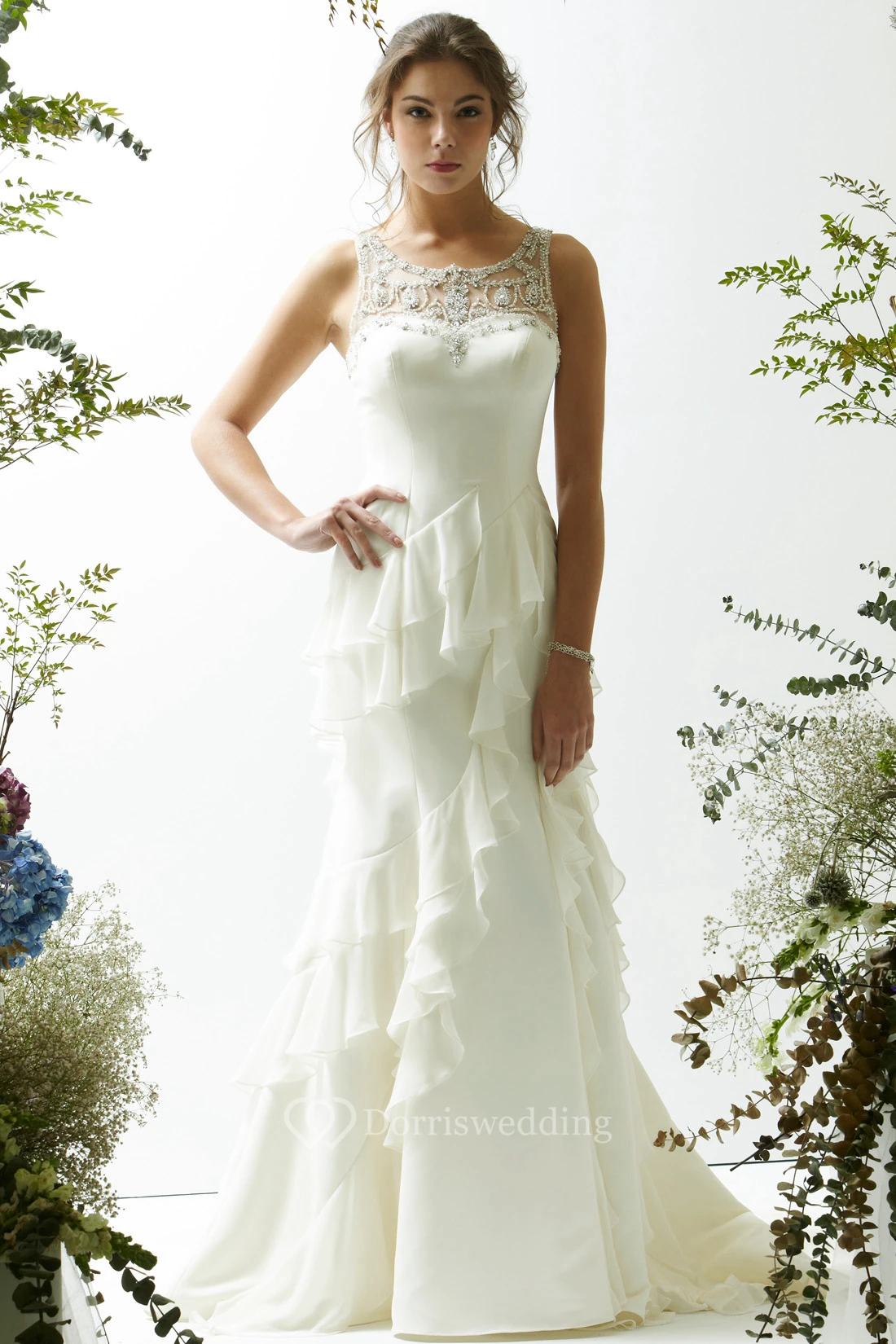 • Embellishments: Cascading Ruffles, Beading