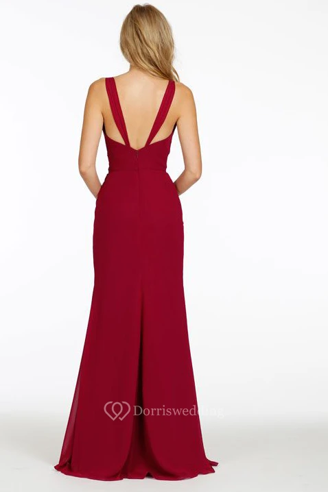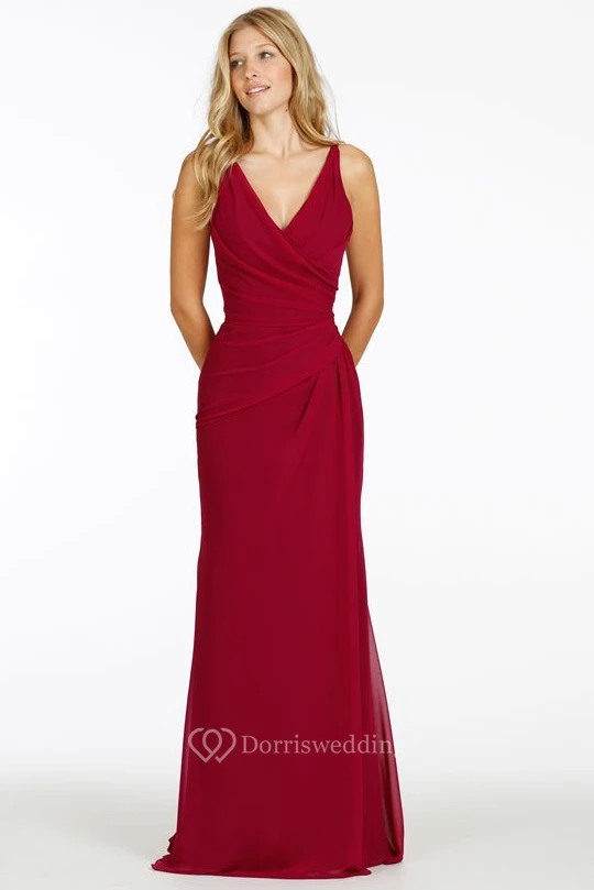 Sheath Maxi Sleeveless Side-Draped V-Neck Chiffon Bridesmaid Dress With Straps