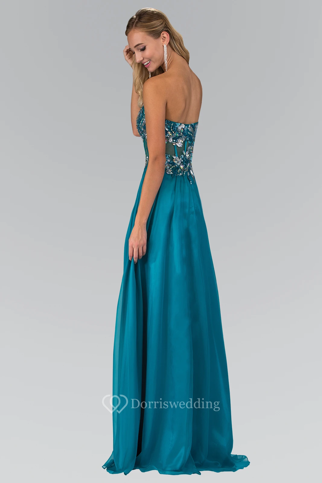 Sheath Maxi Strapless Sleeveless Chiffon Backless Dress With Beading And Split Front