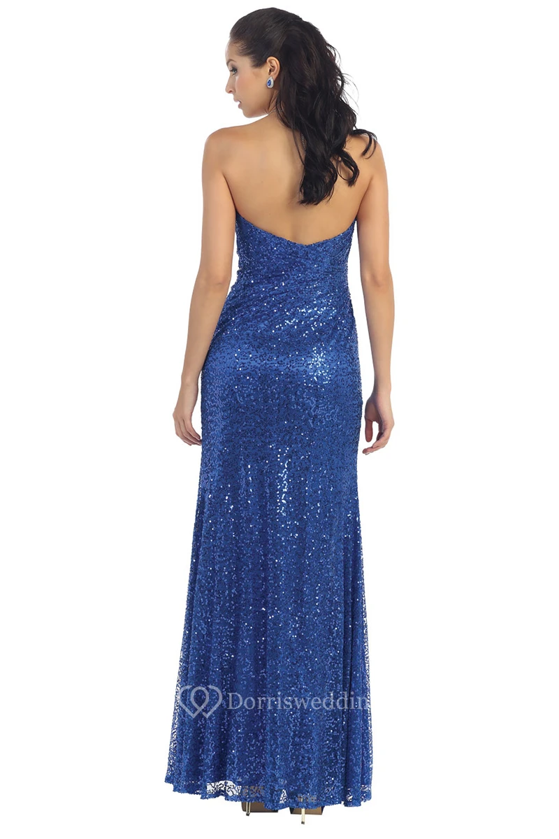 Sheath Maxi Sweetheart Sequins Backless Dress With Criss Cross And Split Front