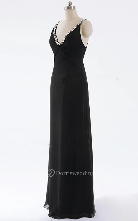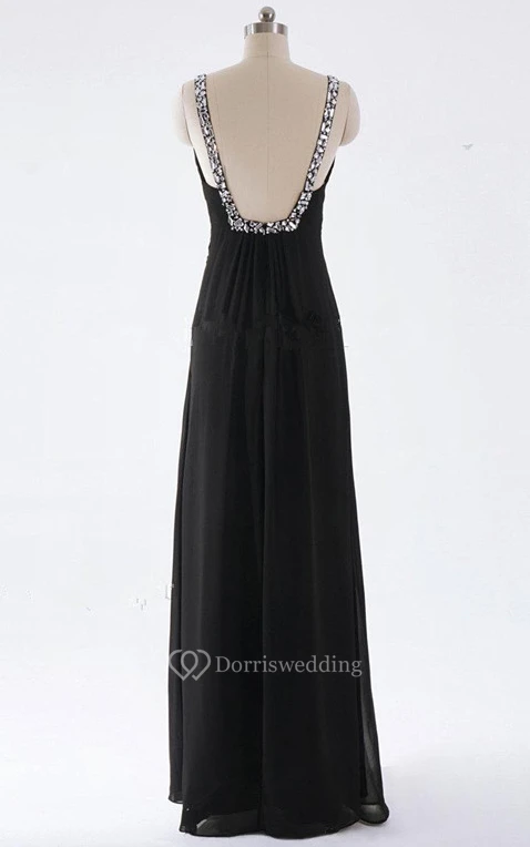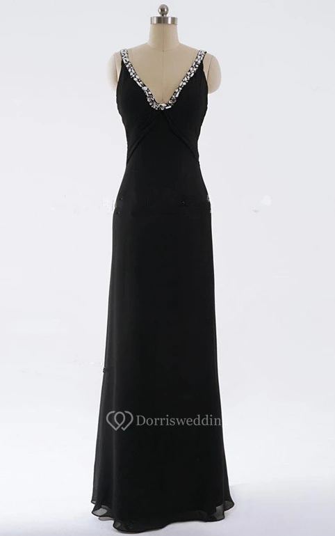 Sheath Maxi V-neck Backless Dress With Beading