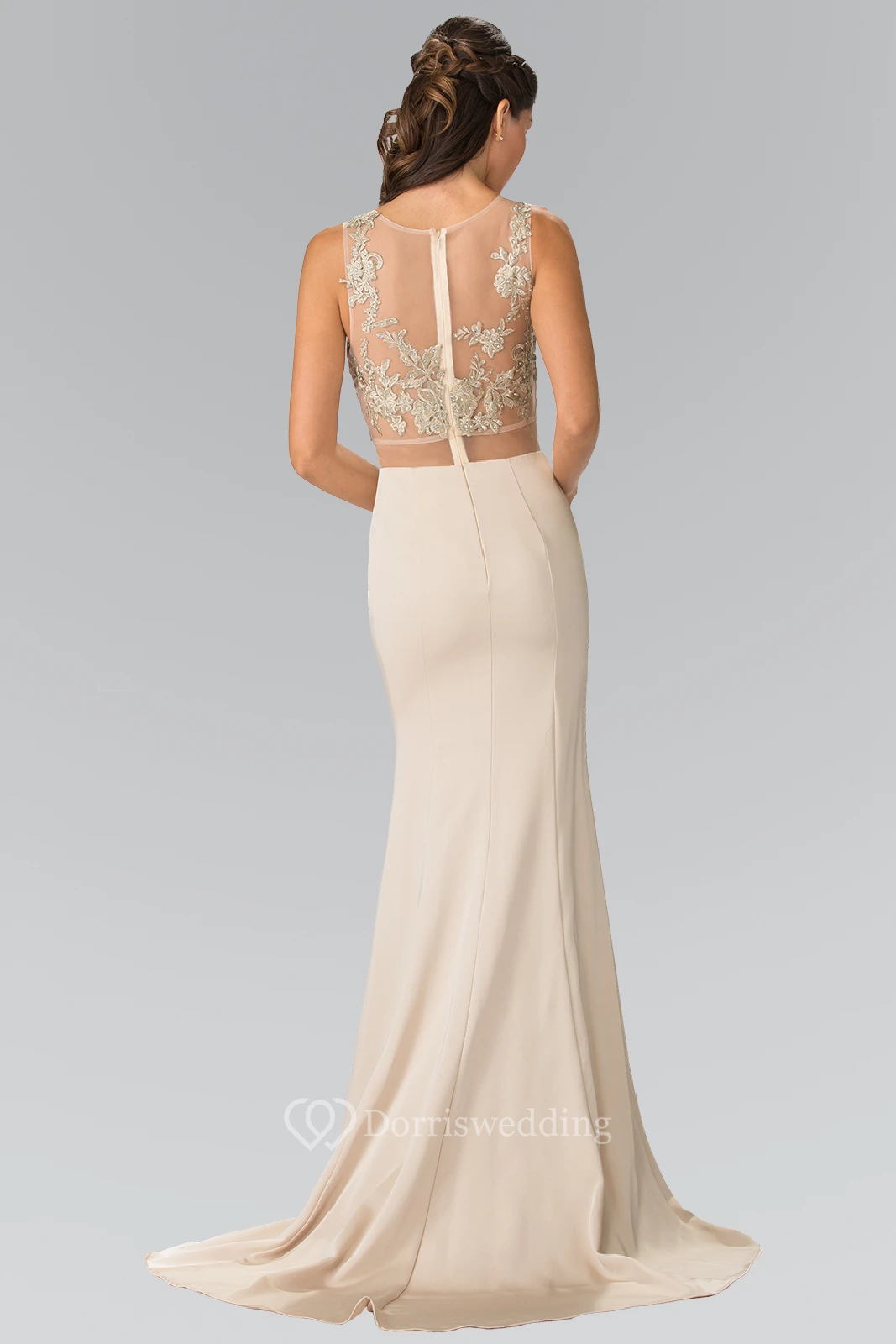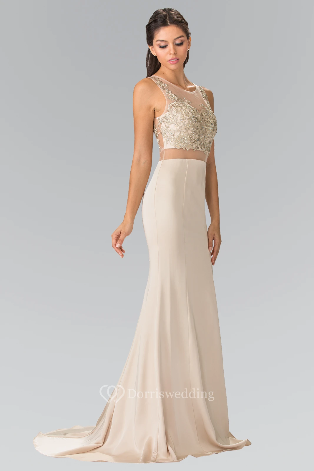 Sheath Maxi V-Neck Sleeveless Jersey Illusion Dress With Beading