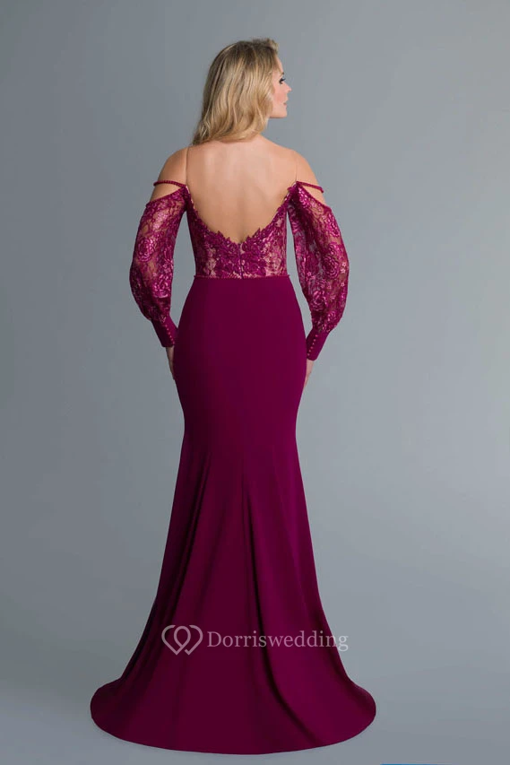 Sheath Off-The-Shoulder Balloon Long Sleeve Jersey Lace Illusion Dress
