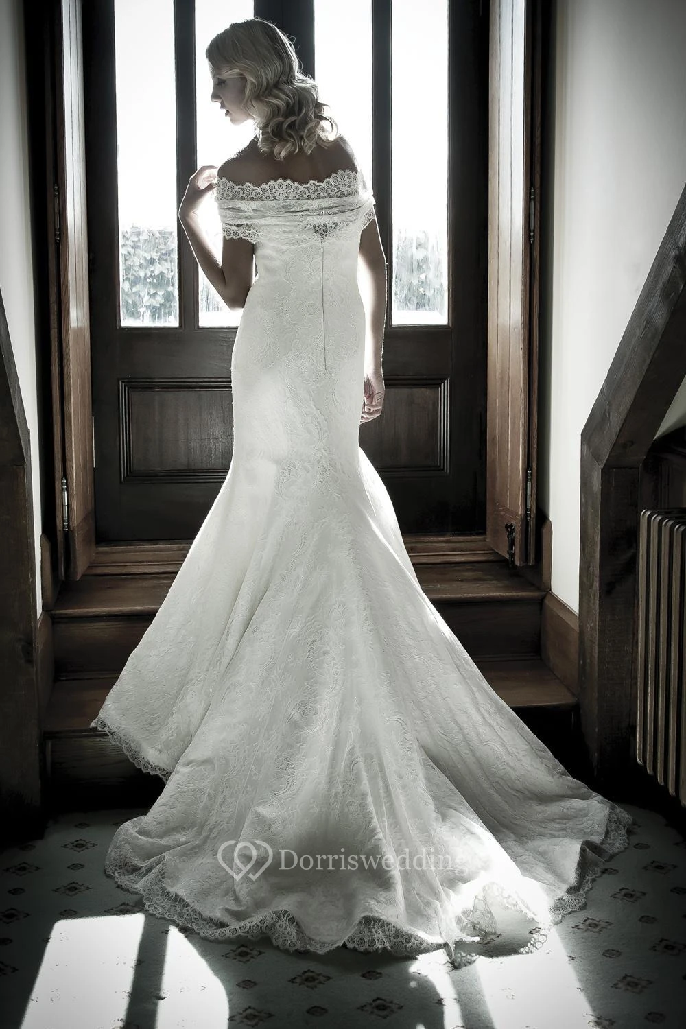 Sheath Off-The-Shoulder Long Lace Wedding Dress With Zipper