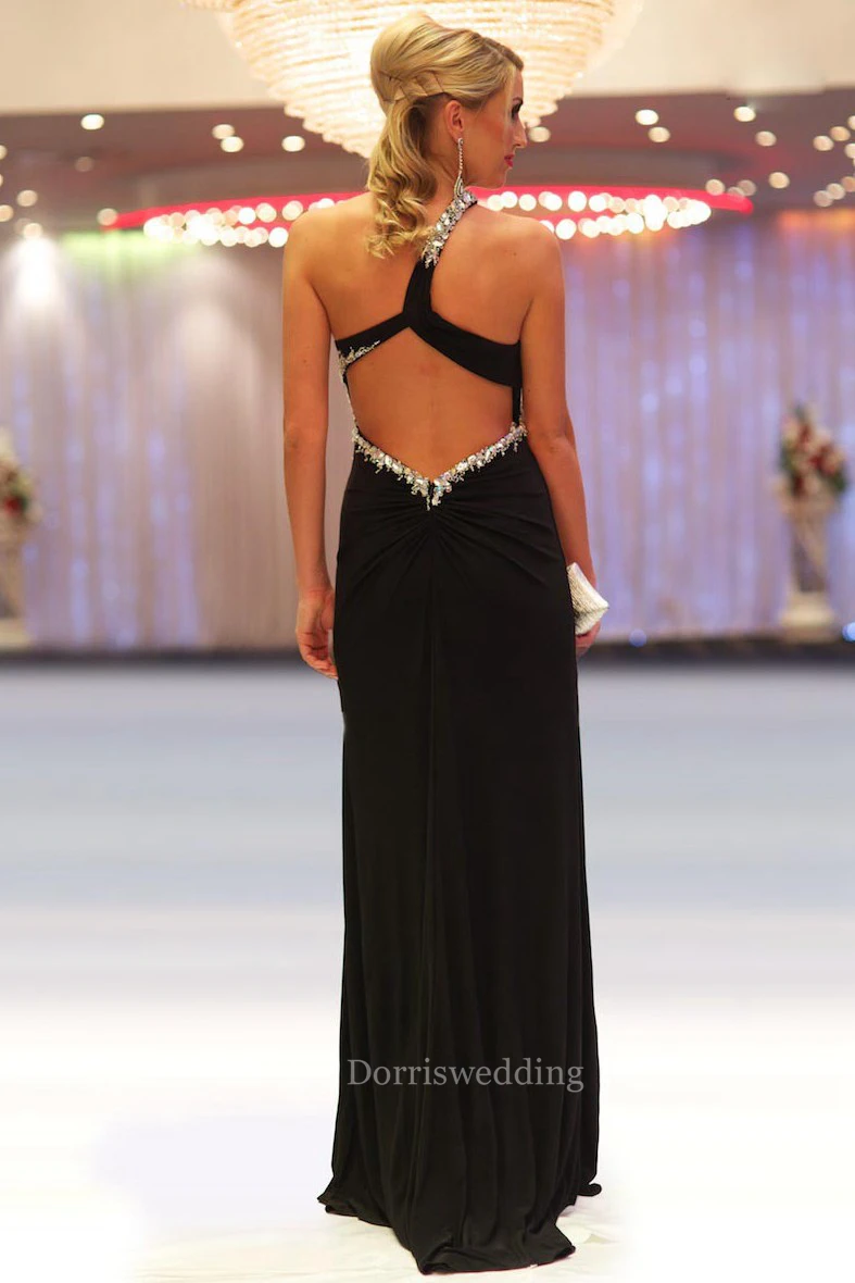 Sheath One-Shoulder Long Beaded Sleeveless Chiffon Prom Dress With Split Front