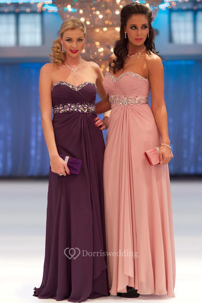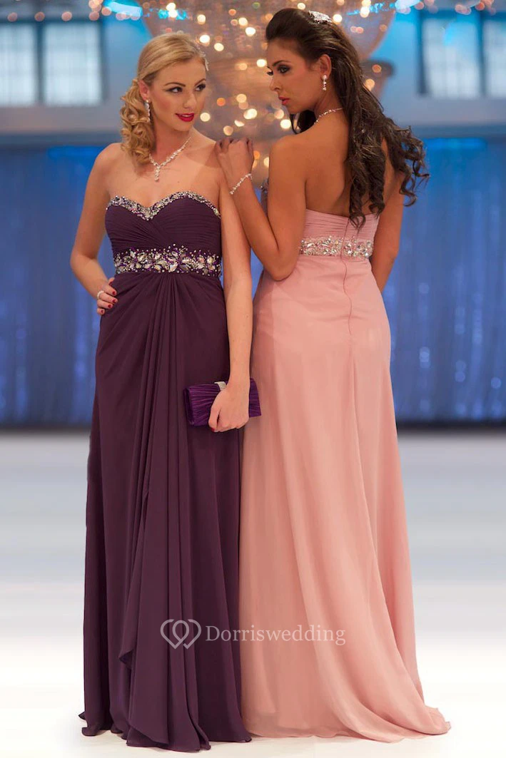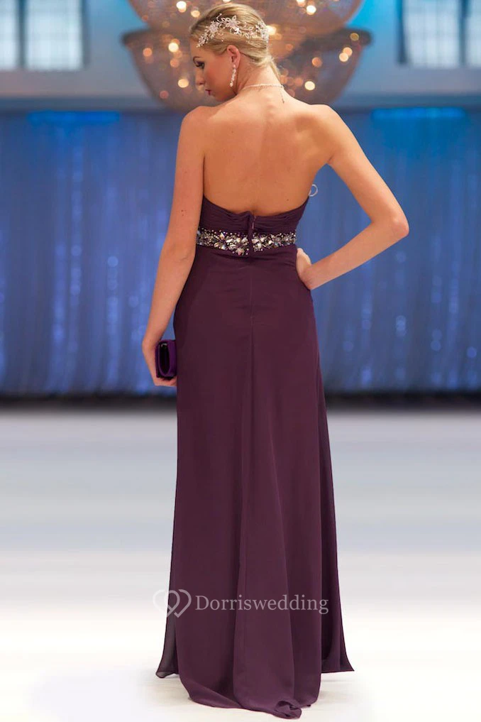 Sheath Ruched Empire Sweetheart Floor-Length Sleeveless Chiffon Prom Dress With Beading And Waist Jewellery