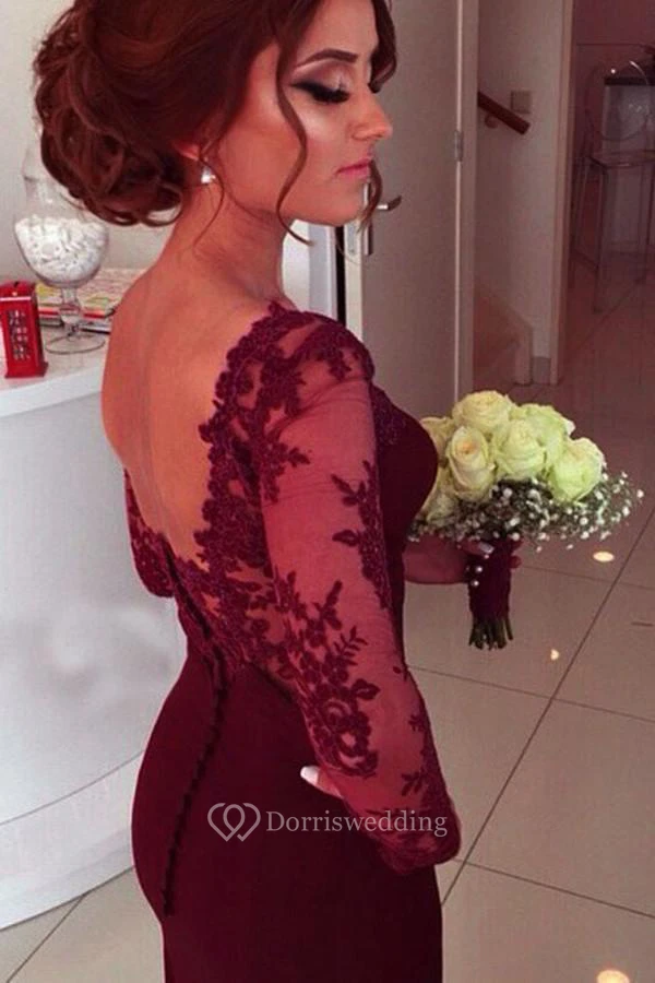 Sheath Satin Lace Sweetheart Long Sleeve Open Back Button Zipper Dress