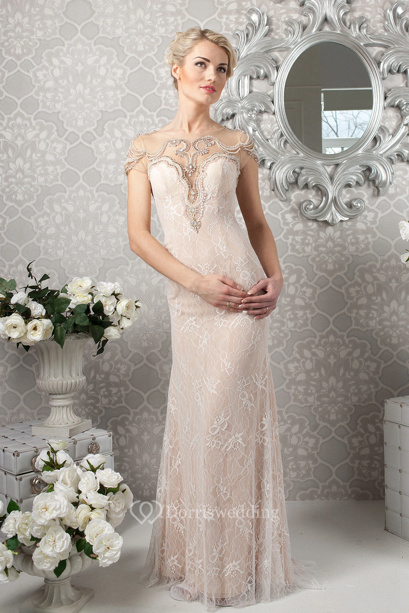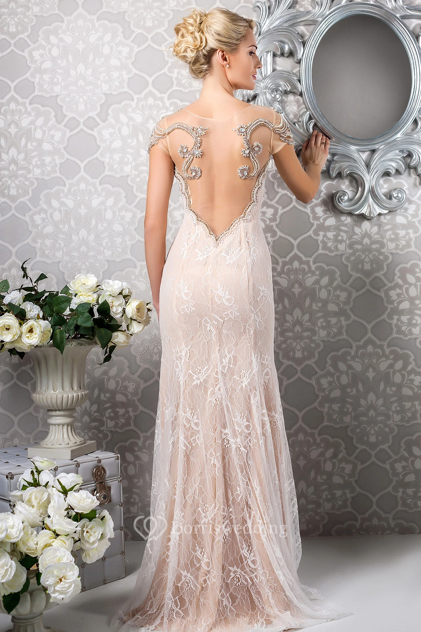 Sheath Scoop-Neck Beaded Long Sleeveless Lace Evening Dress