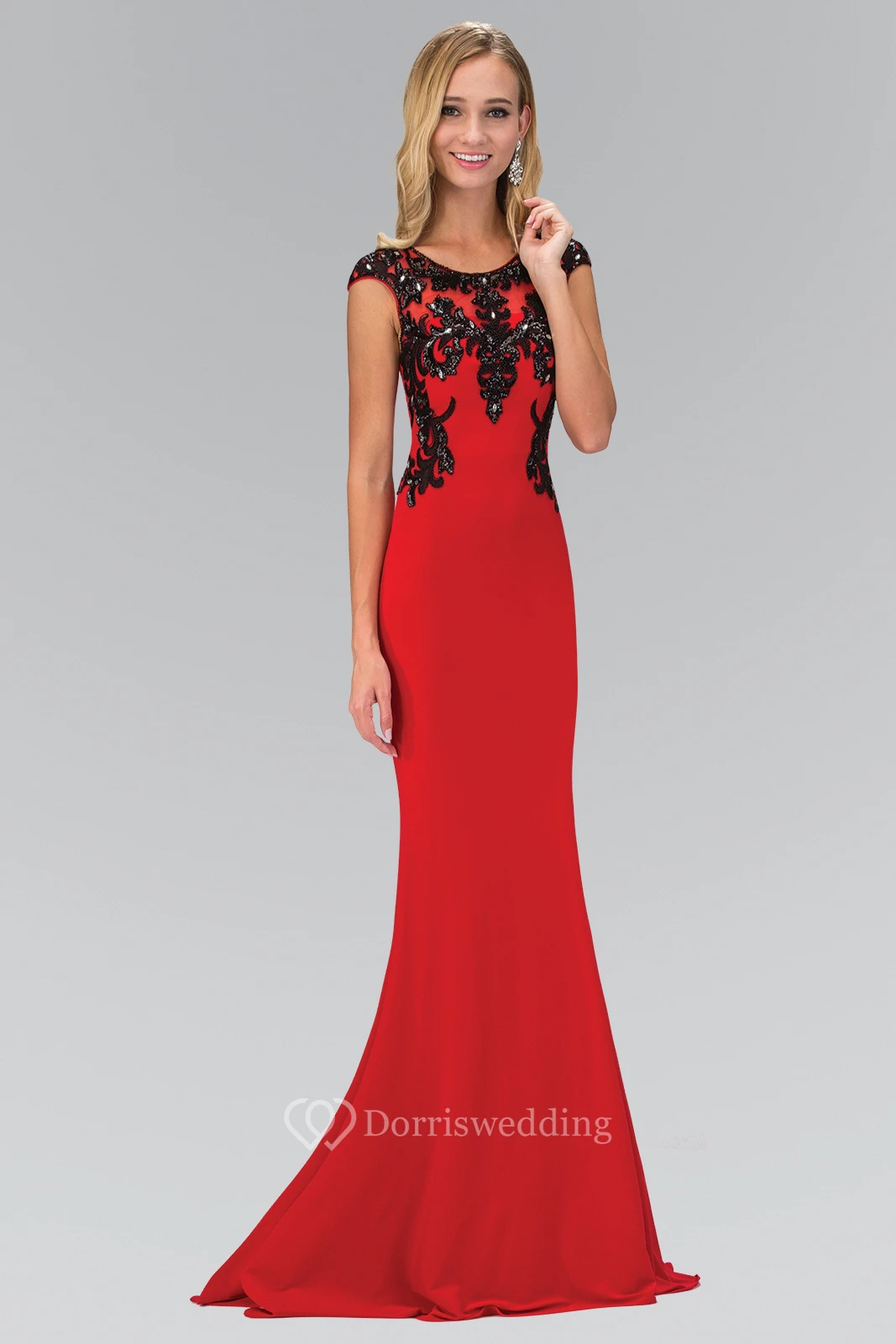 Sheath Scoop-Neck Cap-Sleeve Jersey Illusion Dress With Beading