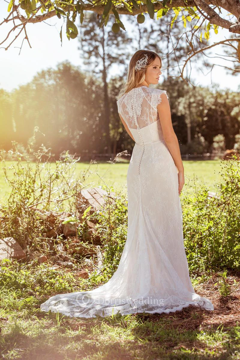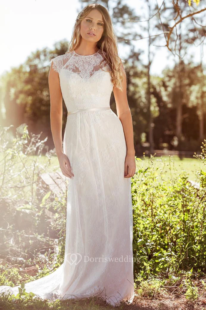 Sheath Scoop-Neck Floor-Length Sleeveless Lace Wedding Dress With Appliques And Illusion