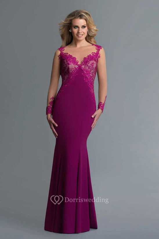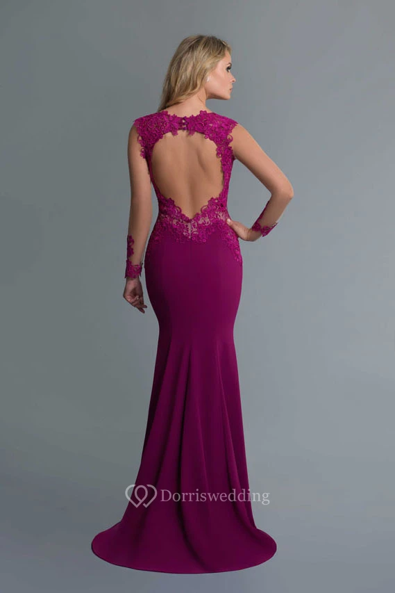 Sheath Scoop-Neck Long Sleeve Jersey Lace Keyhole Dress