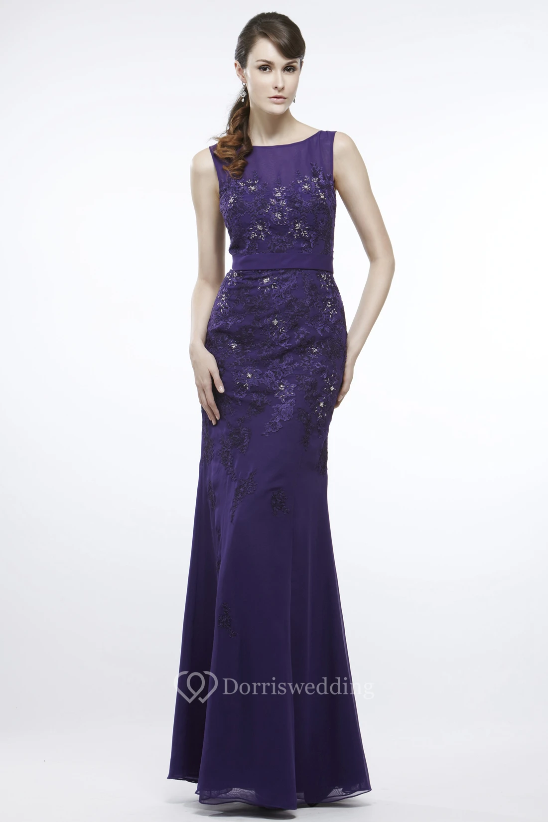 Sheath Scoop-Neck Sleeveless Appliqued Floor-Length Chiffon Prom Dress With Beading