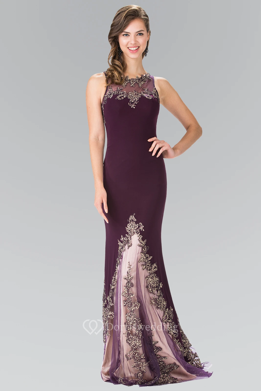 Sheath Scoop-Neck Sleeveless Jersey Illusion Dress With Appliques
