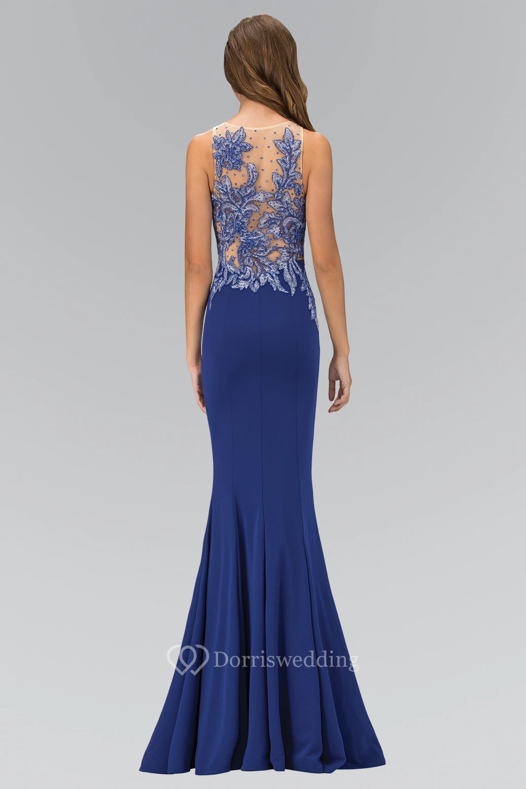 Sheath Scoop-Neck Sleeveless Jersey Illusion Dress With Beading And Appliques