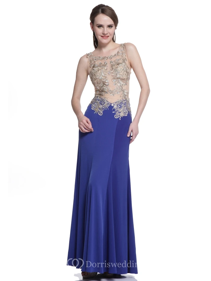 Sheath Scoop-Neck Sleeveless Jersey Illusion Dress With Beading And Embroidery