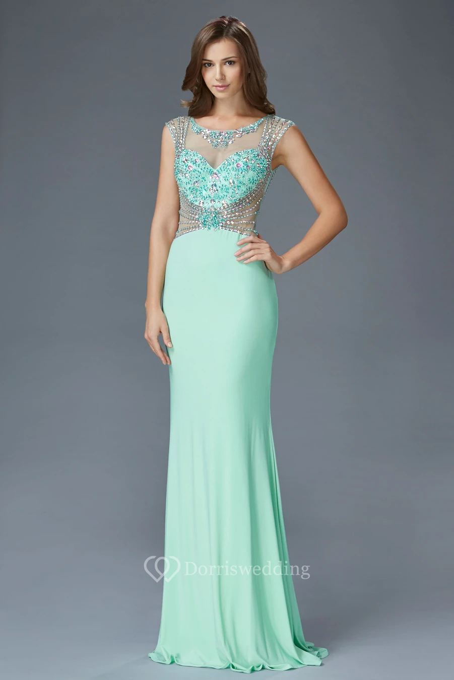 Sheath Scoop-Neck Sleeveless Jersey Illusion Dress With Beading