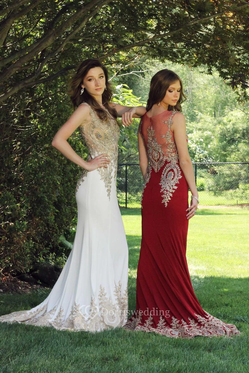 Sheath Scoop-Neck Sleeveless Jersey Illusion Dress With Beading