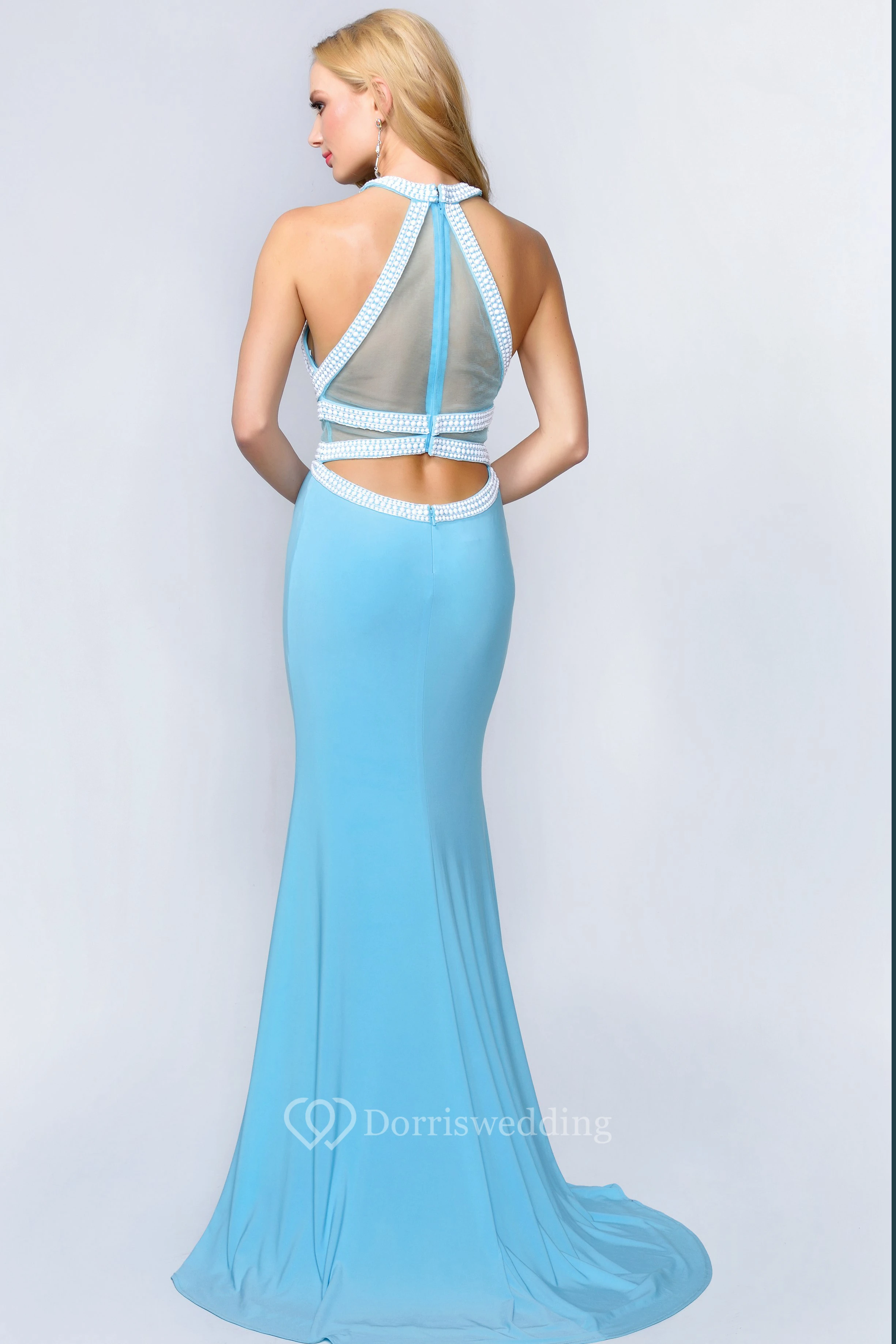 Sheath Scoop-Neck Sleeveless Jersey Illusion Dress With Beading