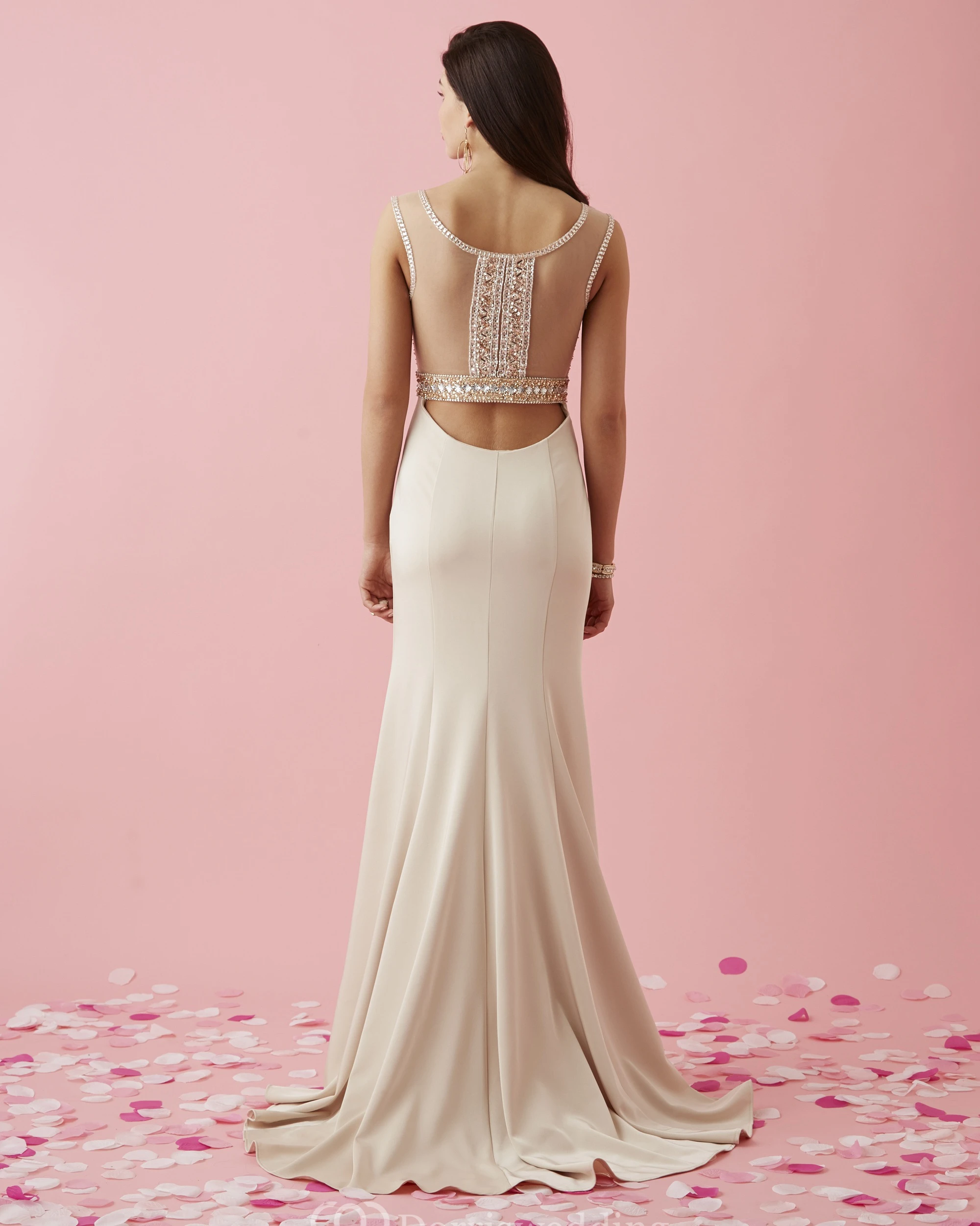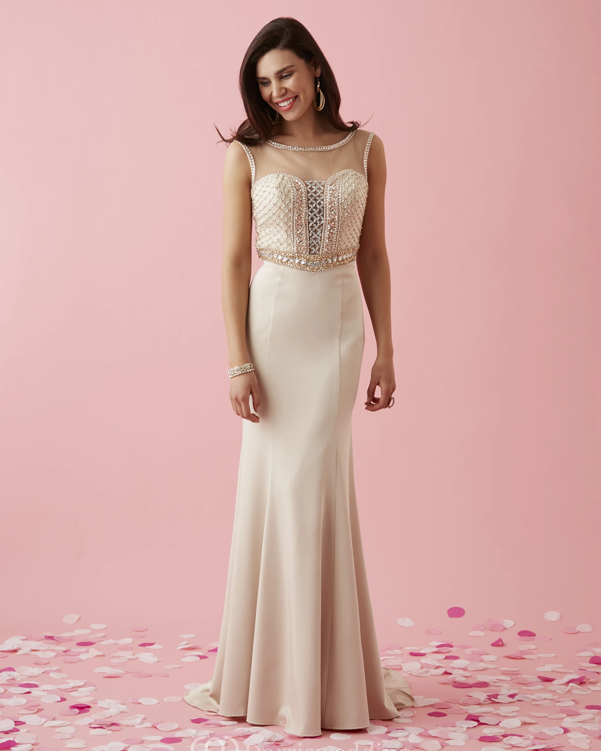 Sheath Scoop-Neck Sleeveless Jersey Illusion Dress With Beading
