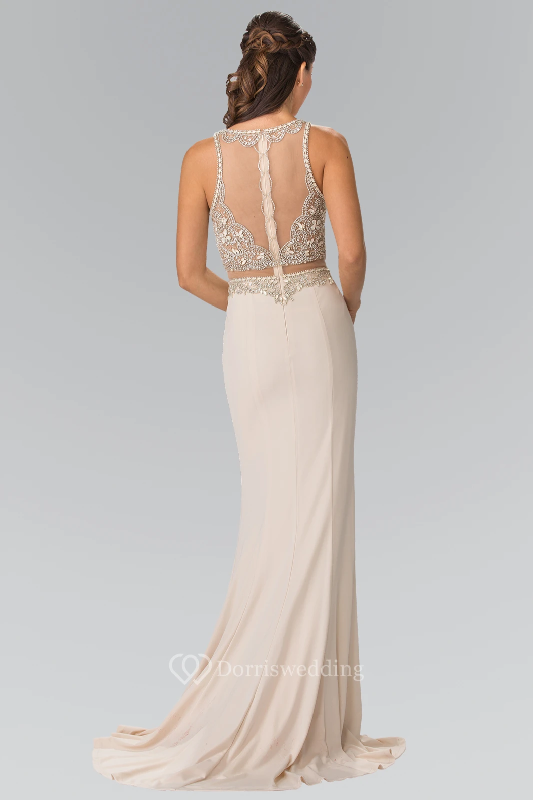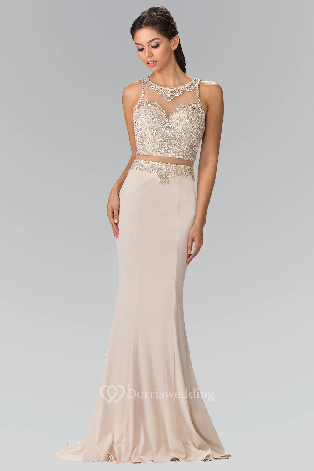 Sheath Scoop-Neck Sleeveless Jersey Illusion Dress With Crystal Detailing
