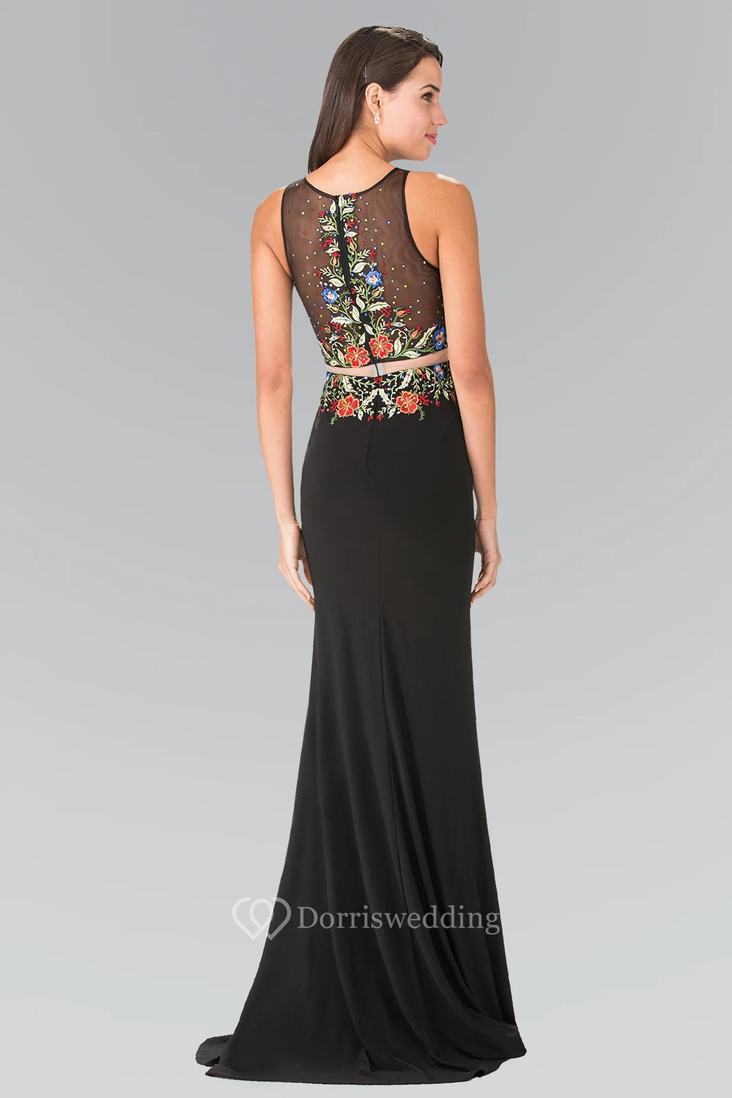 Sheath Scoop-Neck Sleeveless Jersey Illusion Dress With Embroidery