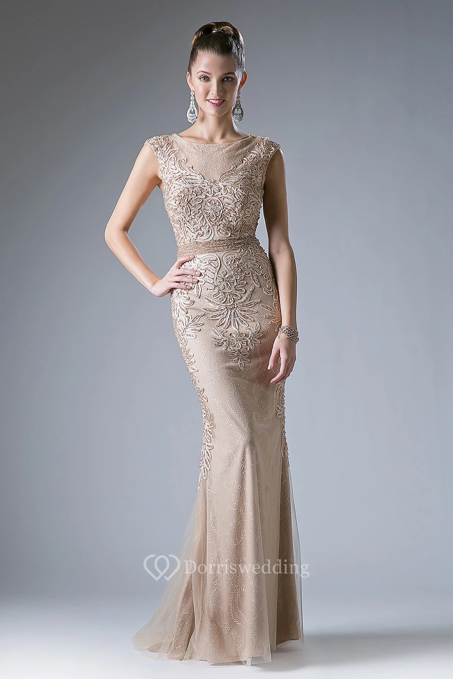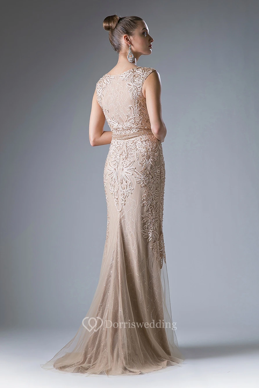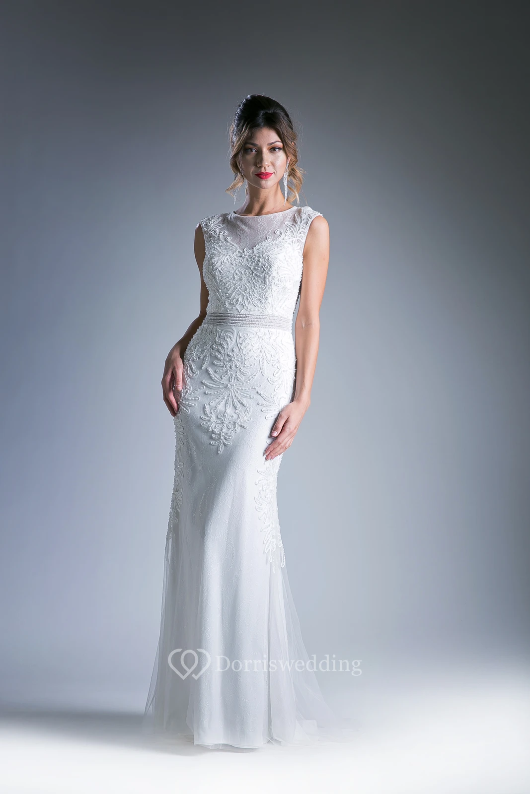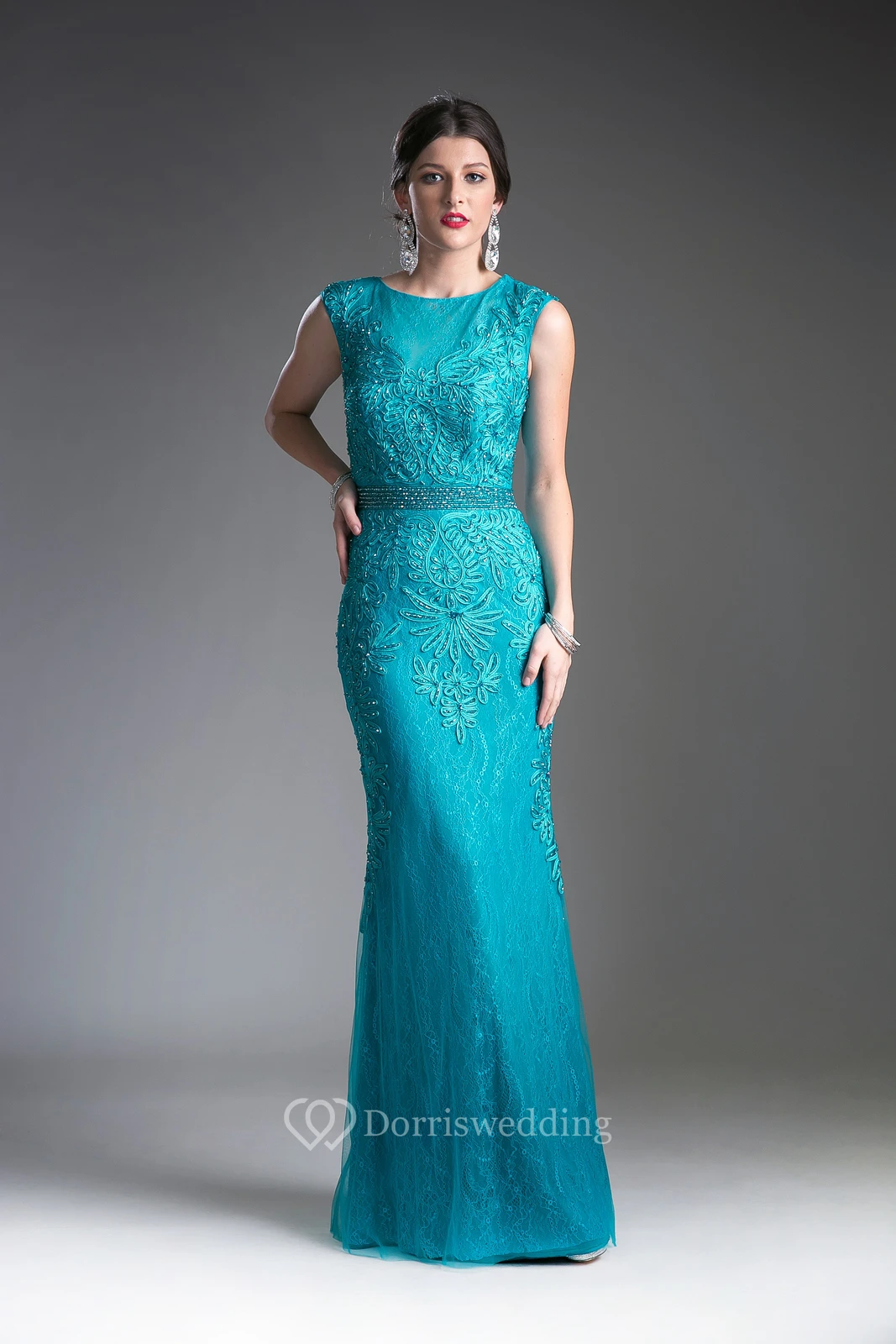 Sheath Scoop-Neck Sleeveless Lace Dress With Beading And Appliques