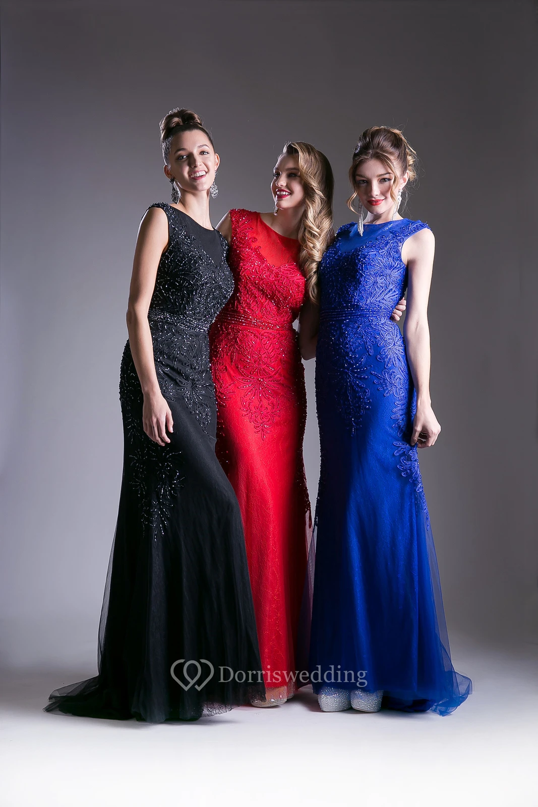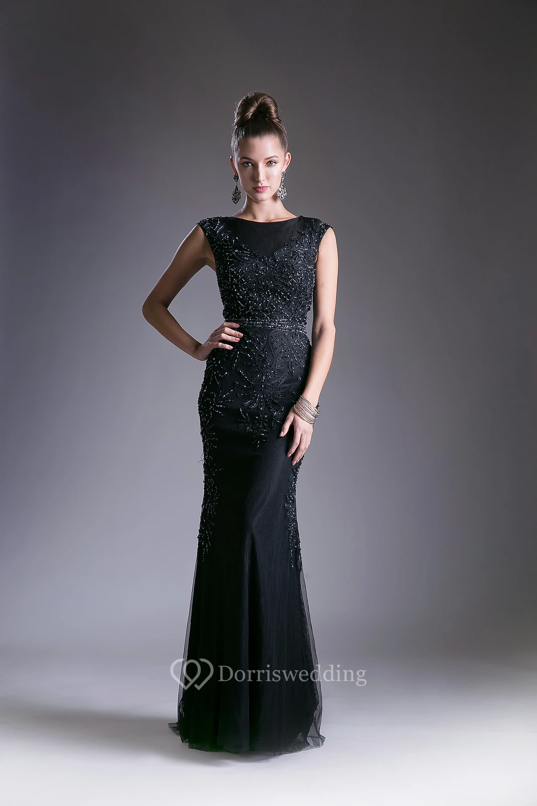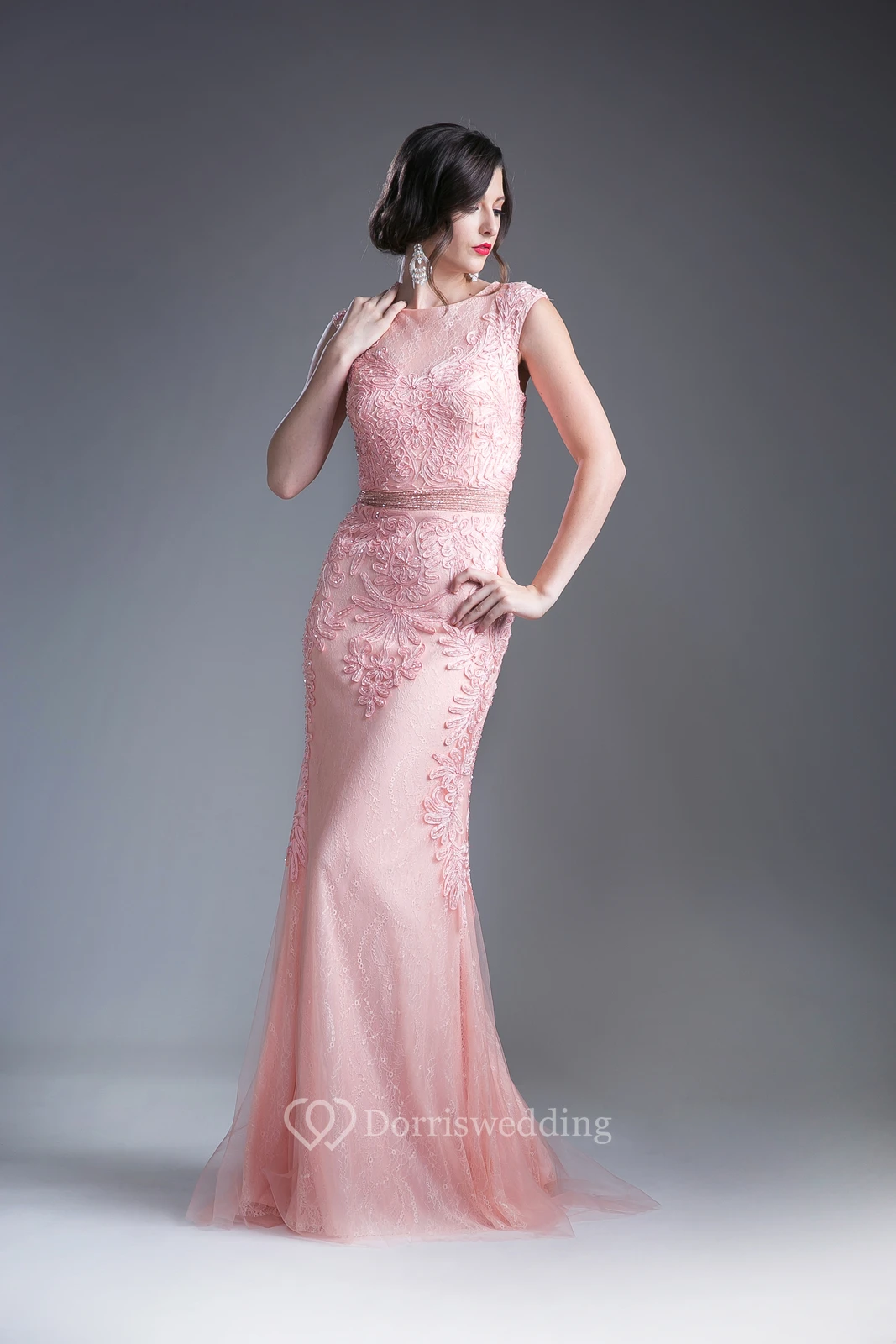 Sheath Scoop-Neck Sleeveless Lace Dress With Beading And Appliques