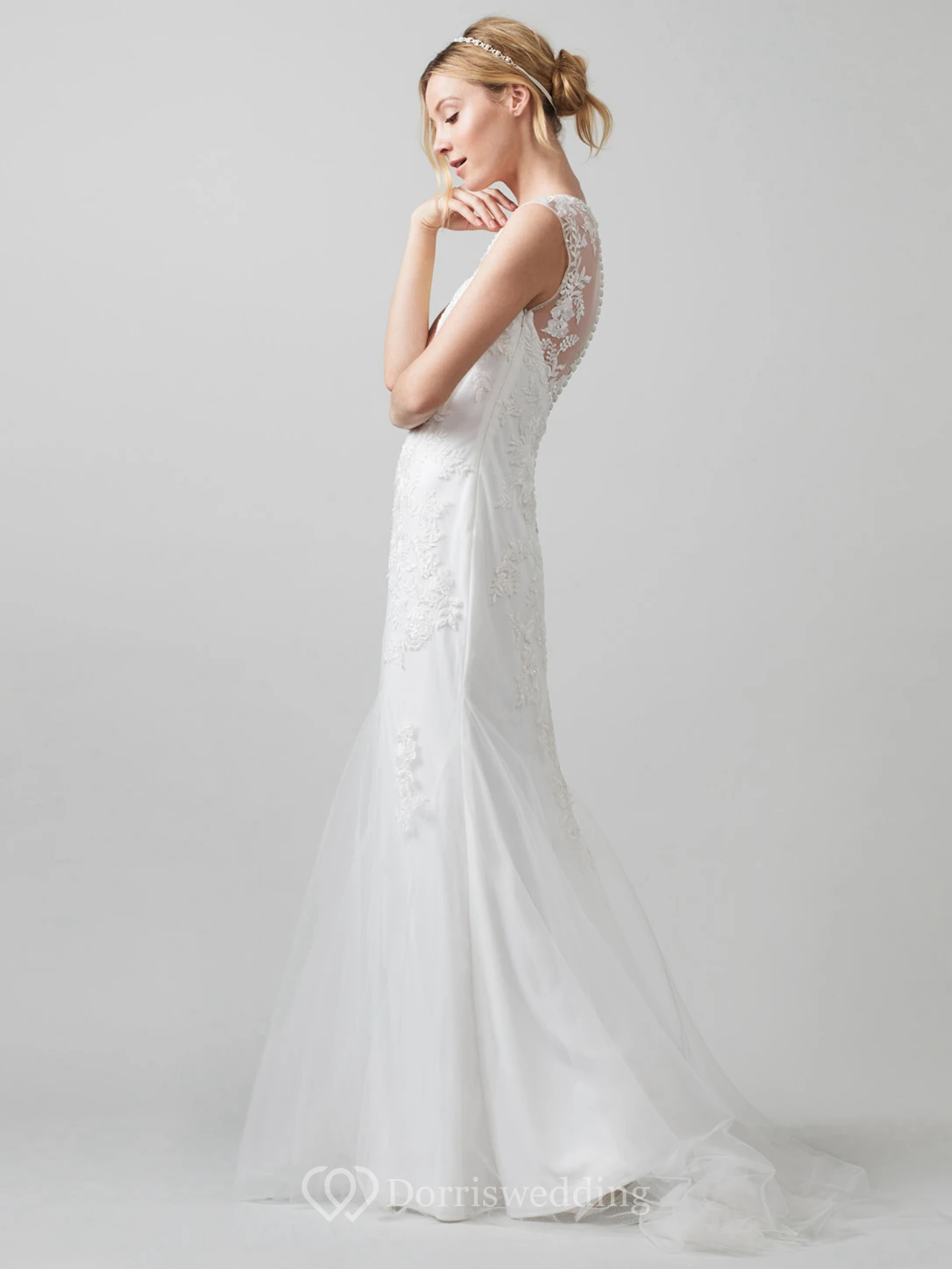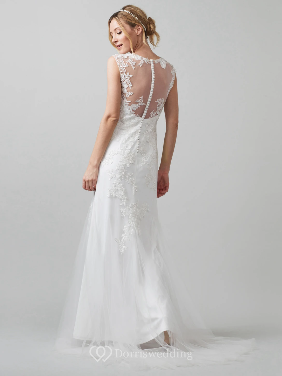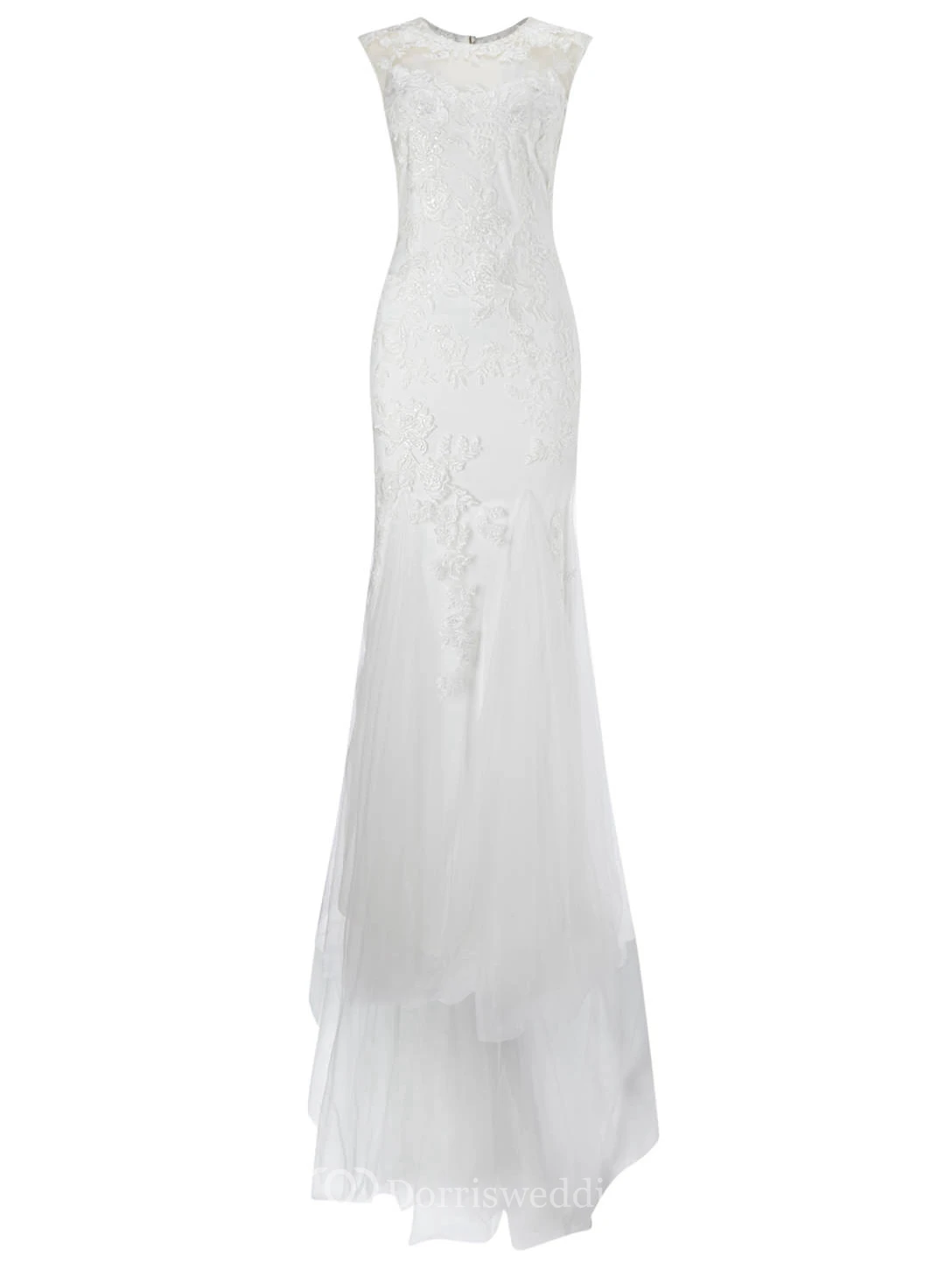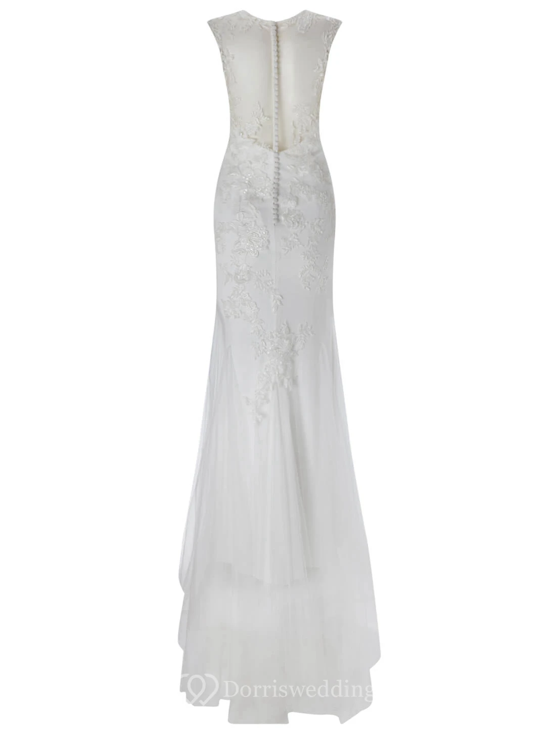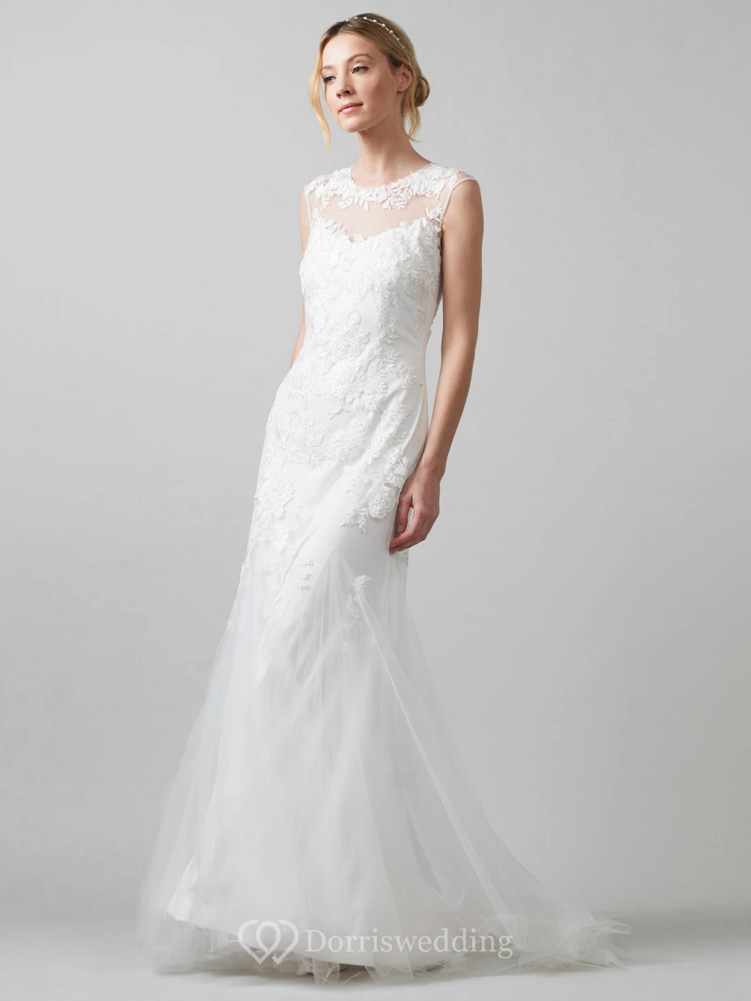 Sheath Scoop-Neck Sleeveless Tulle Wedding Dress With Illusion