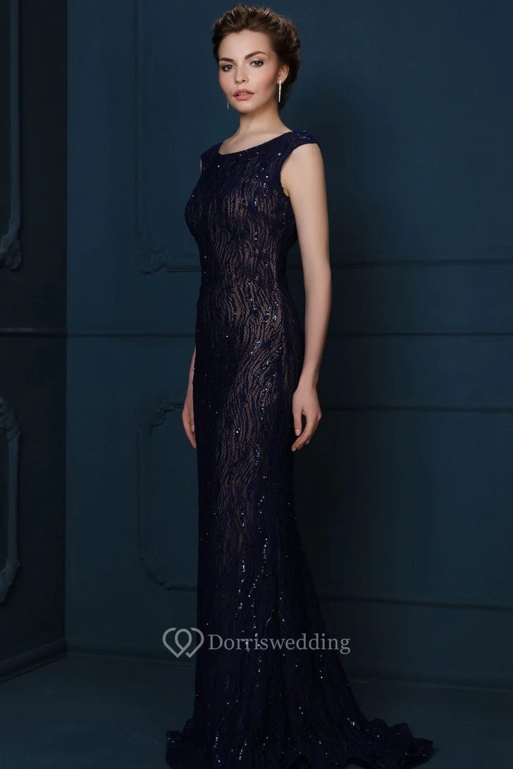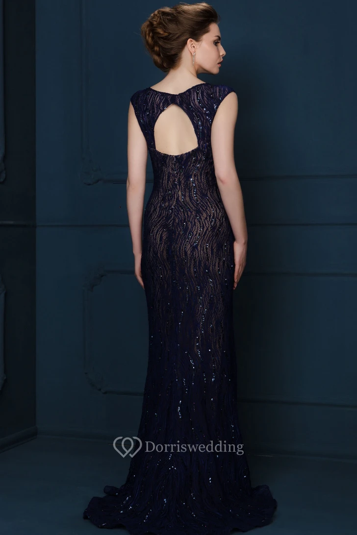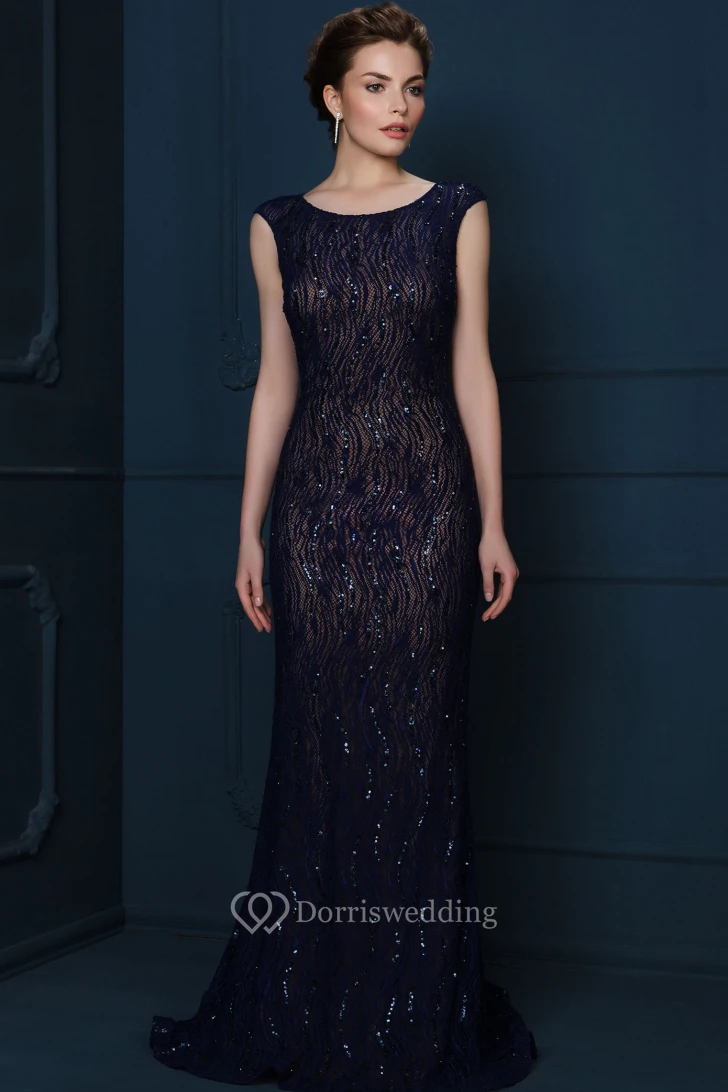 Sheath Sequined Cap-Sleeve Scoop-Neck Long Evening Dress