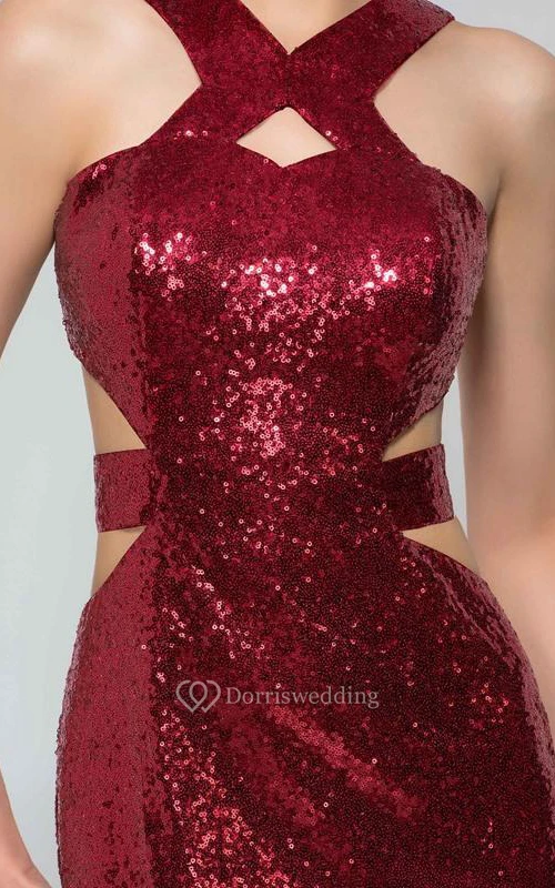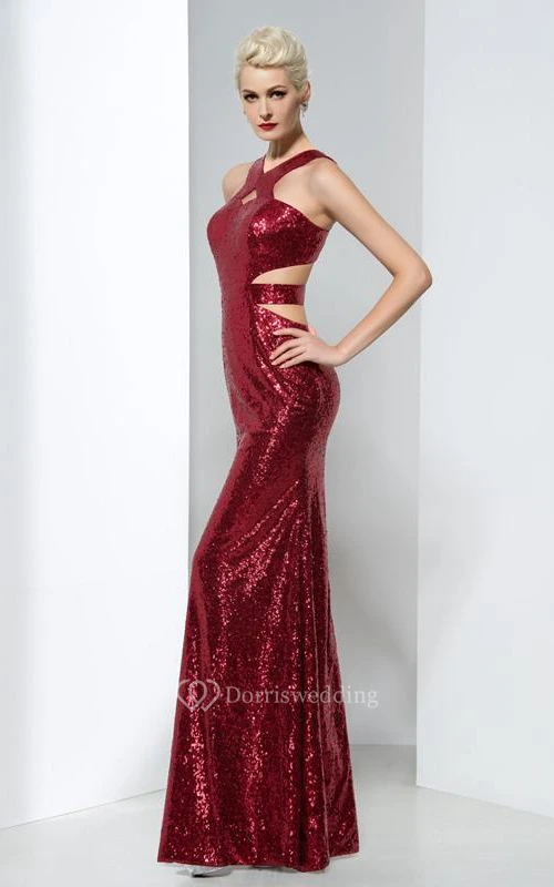Sheath Sequins Hollow Floor-Length Evening Dress
