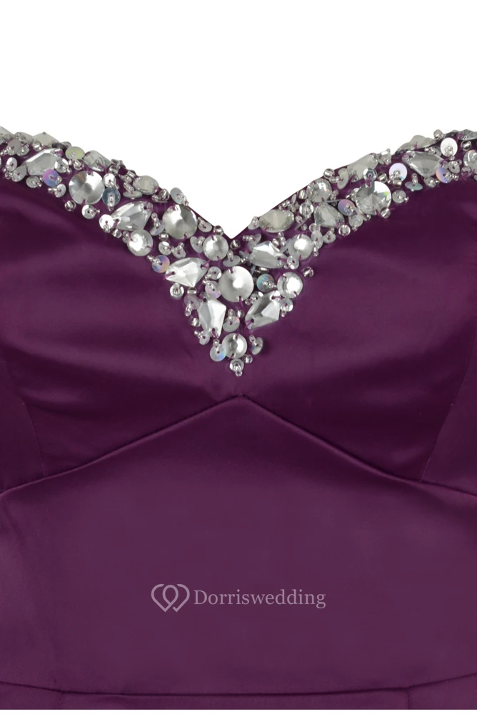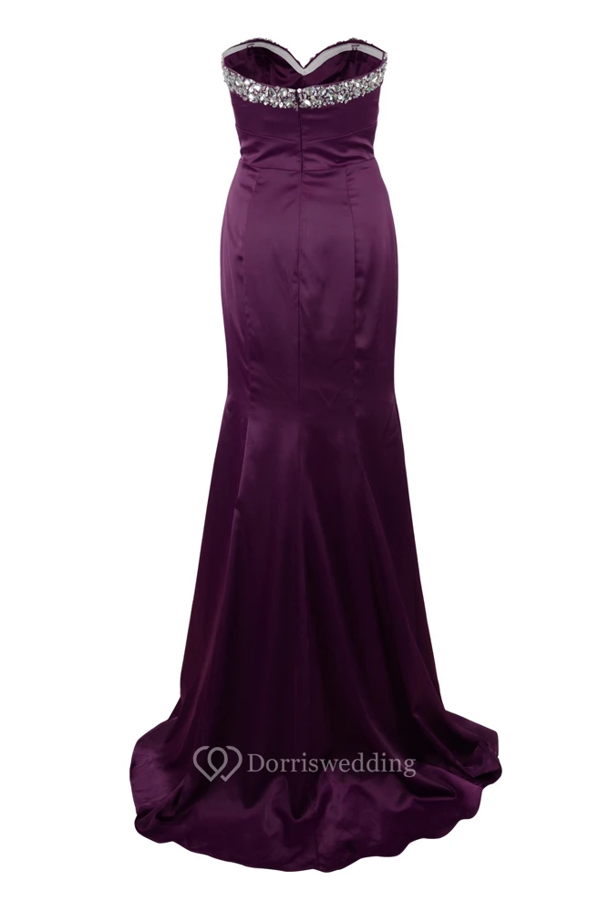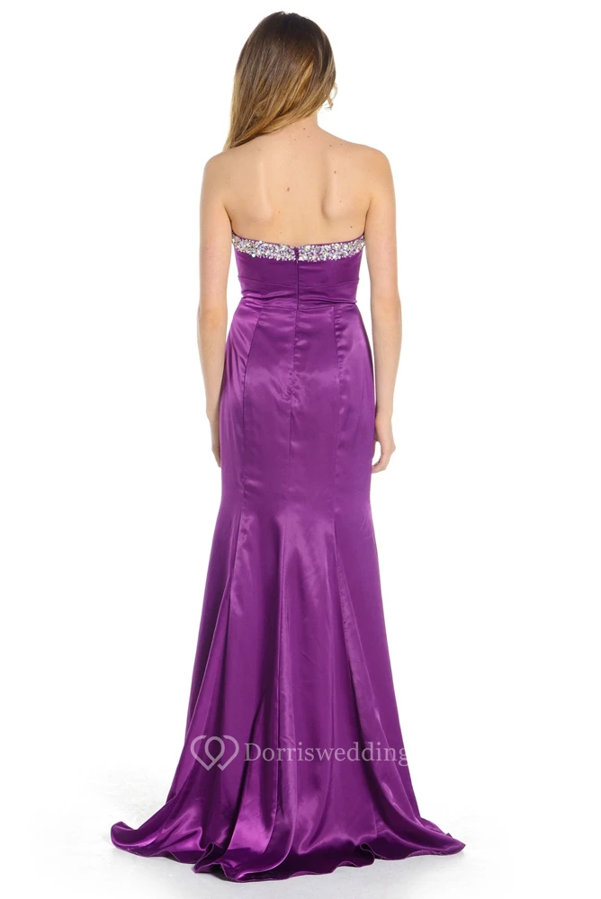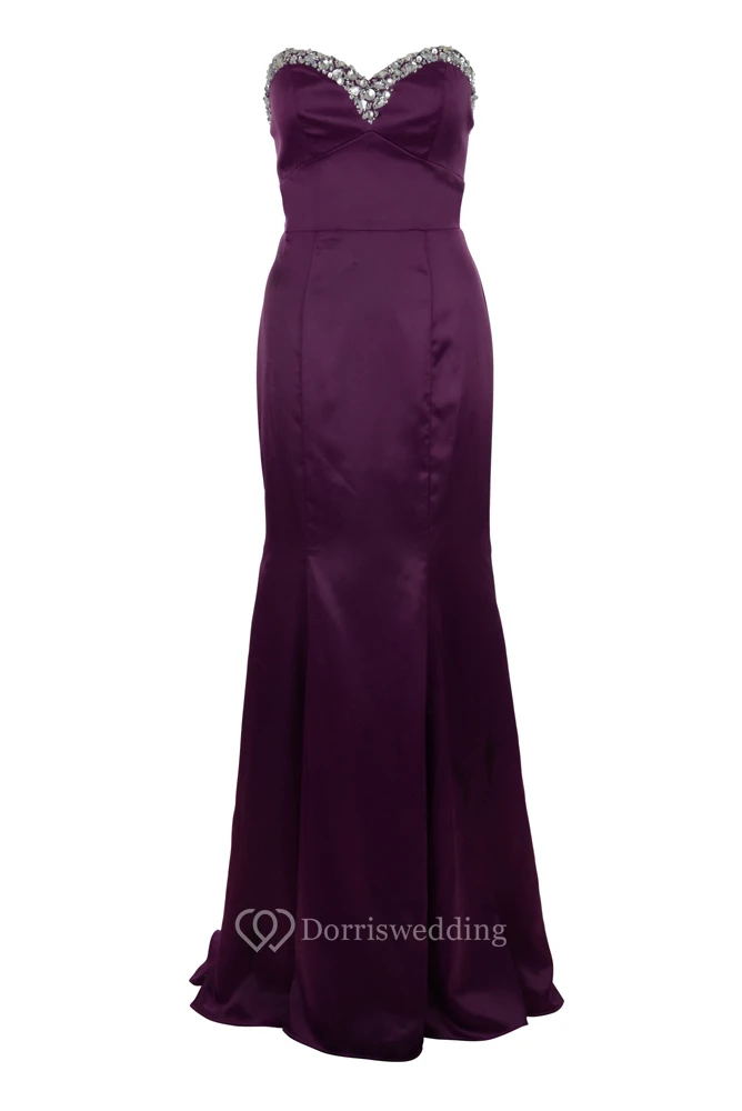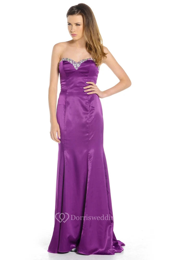 Sheath Sleeveless Beaded Sweetheart Floor-Length Satin Prom Dress
