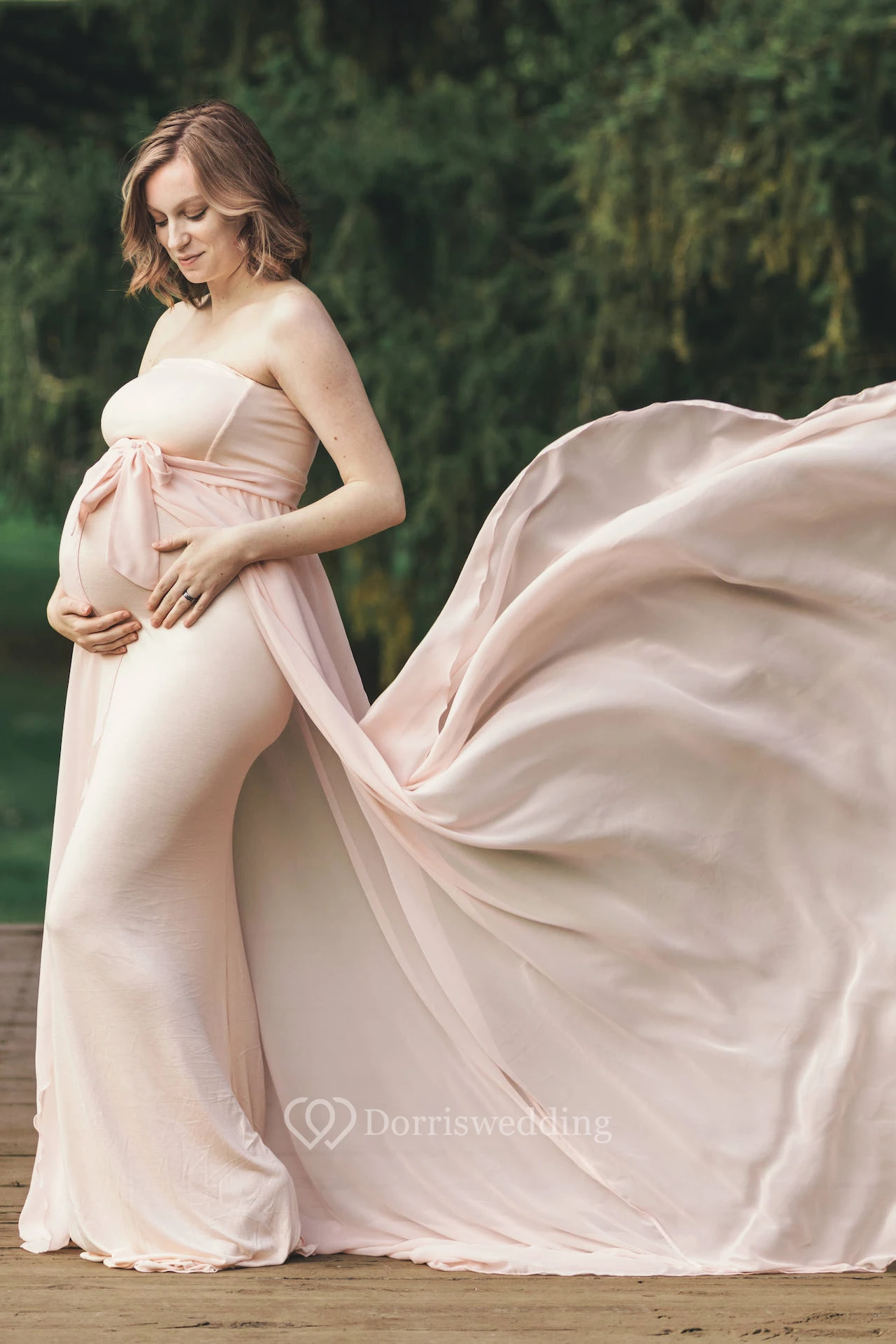 4.It is suggested that you select a dress with empire waist and a lace up back for maternity use.