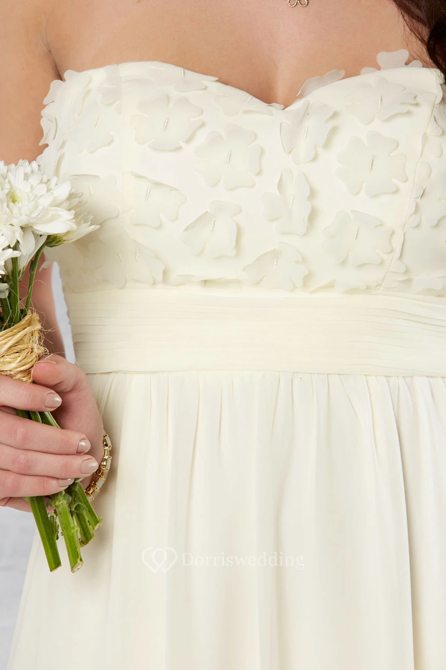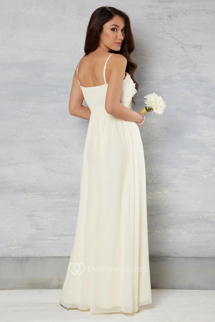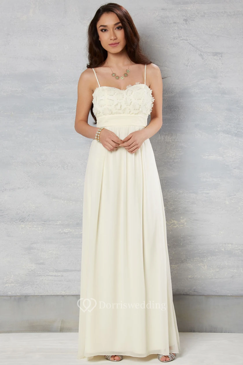 Sheath Sleeveless Floor-Length Spaghetti Floral Chiffon Wedding Dress With Pleats
