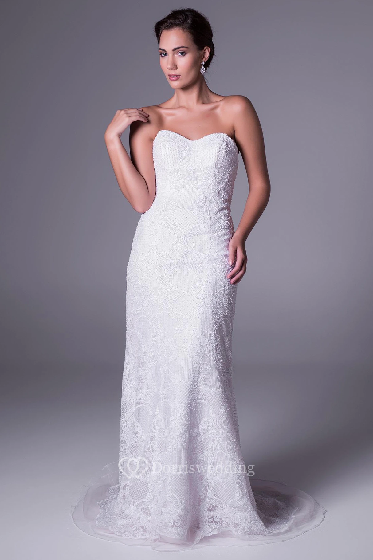 Sheath Sleeveless Floor-Length Strapless Lace Wedding Dress