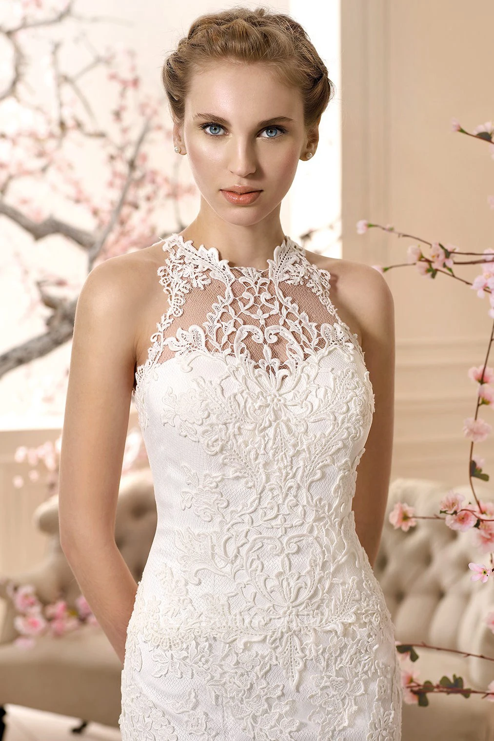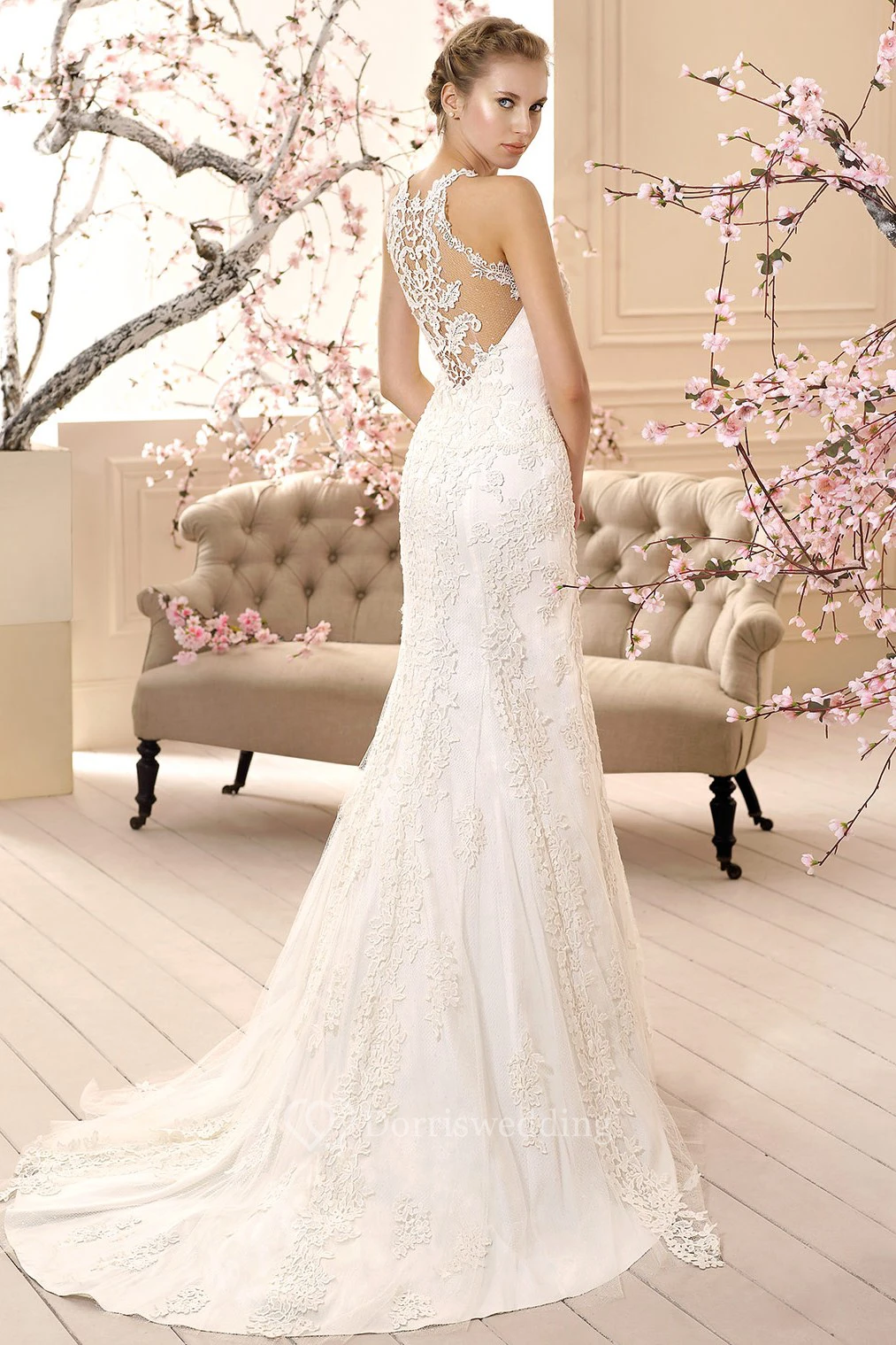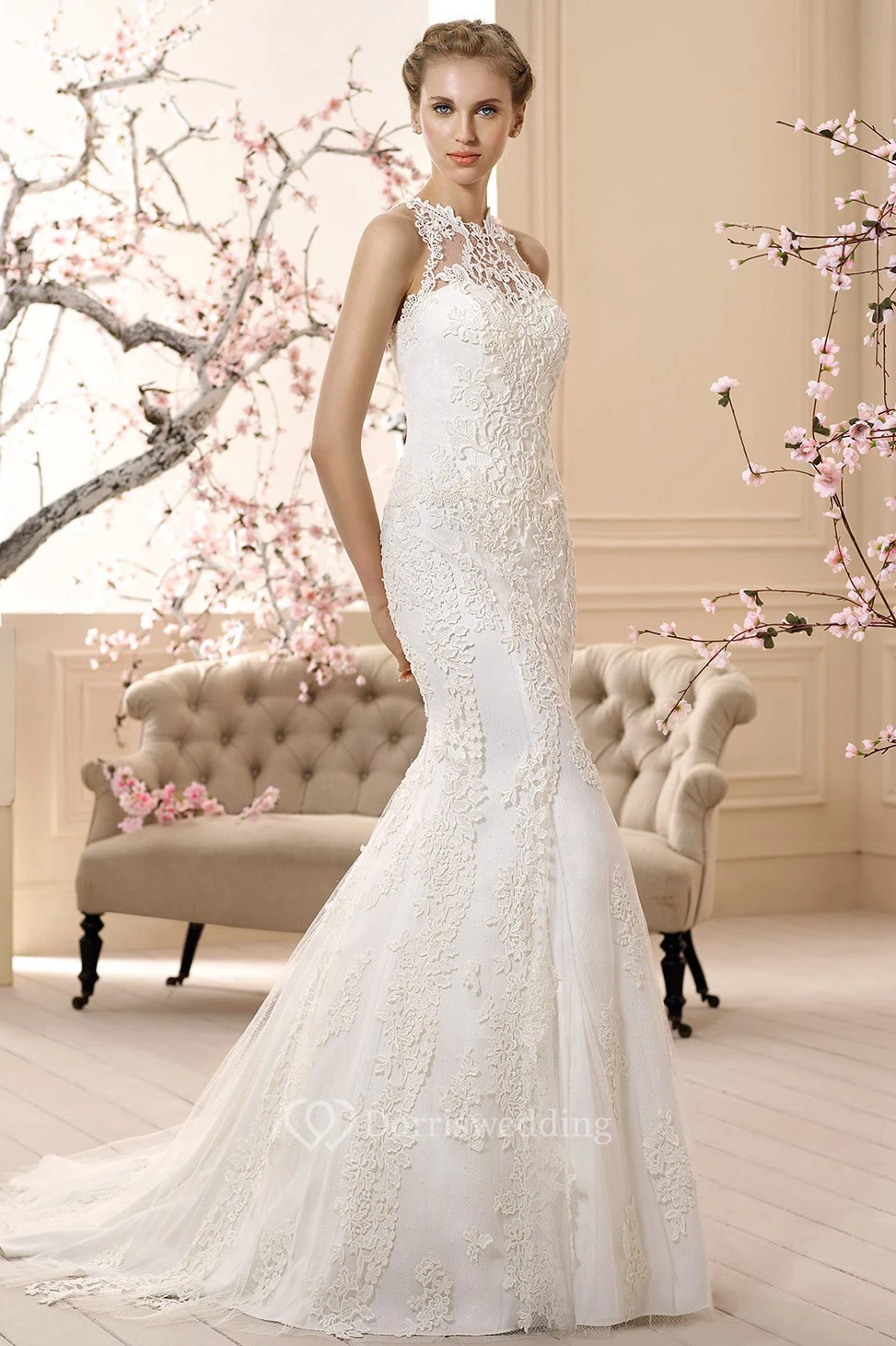 Sheath Sleeveless High-Neck Floor-Length Appliqued Lace Mermaid Wedding Dress
