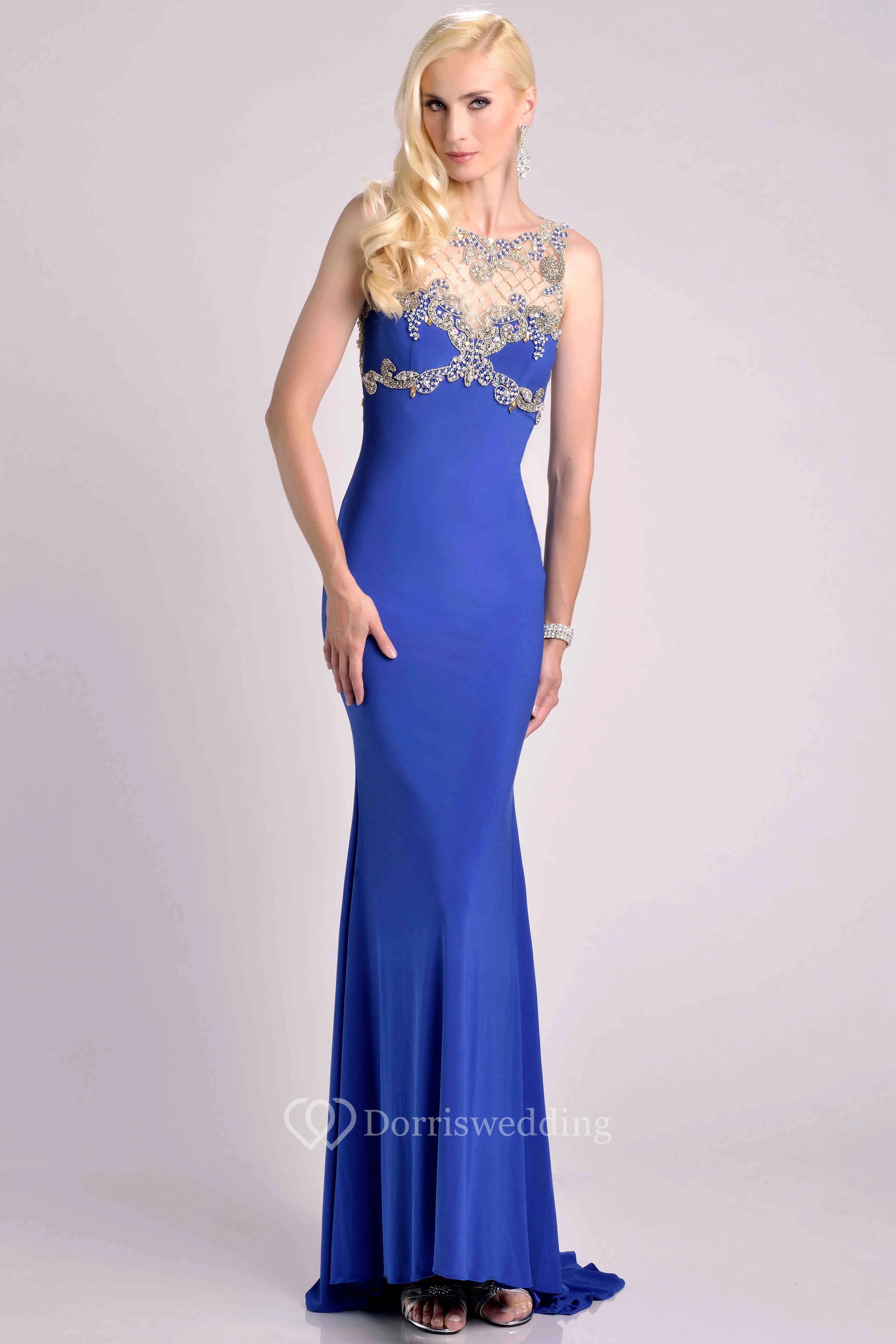 Sheath Sleeveless Jersey Prom Dress With Beaded Top And Bateau Neck