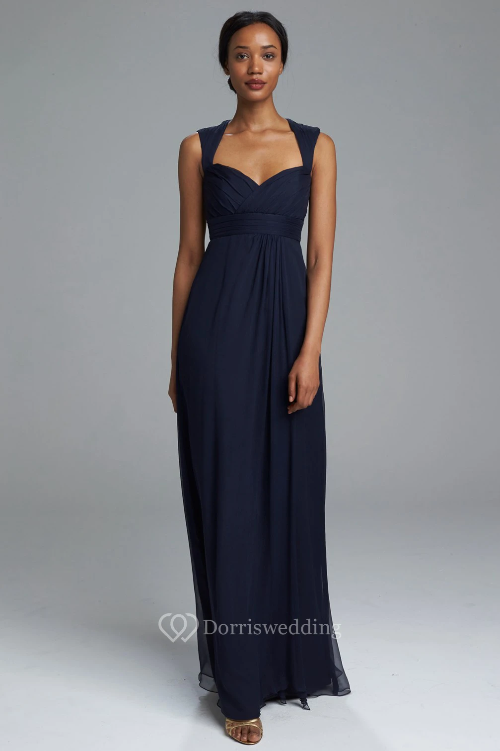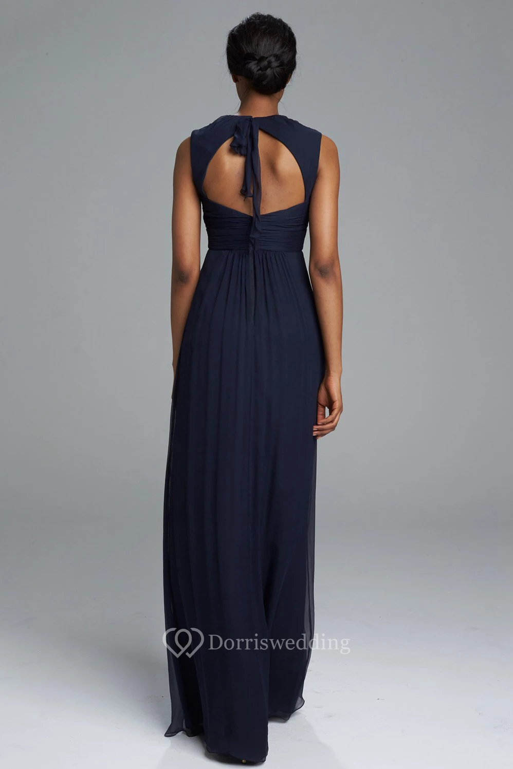 Sheath Sleeveless Long Empire Queen-Anne Ruched Chiffon Bridesmaid Dress With Pleats