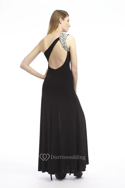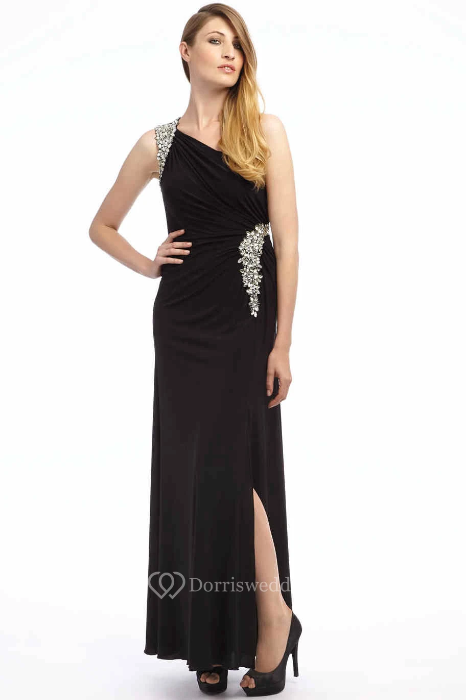 Sheath Sleeveless One-Shoulder Beaded Ankle-Length Chiffon Prom Dress With Split Front And Ruching