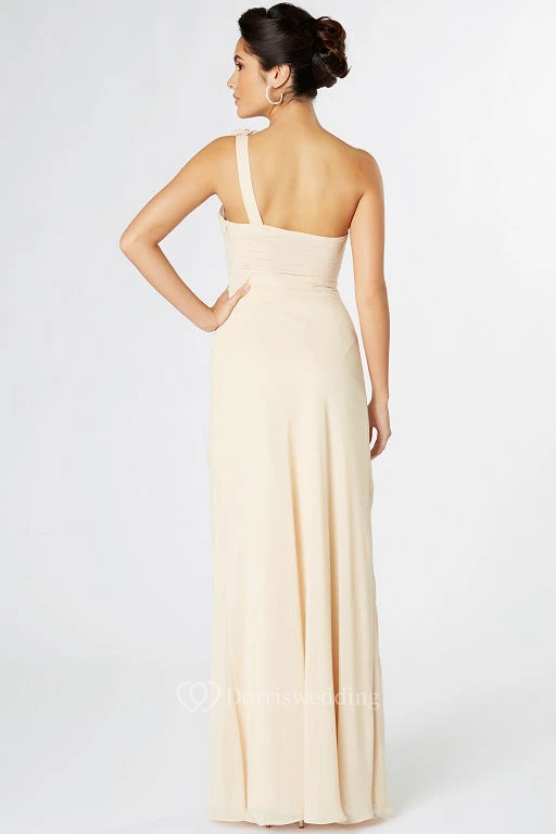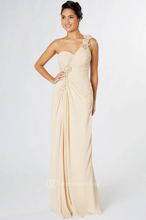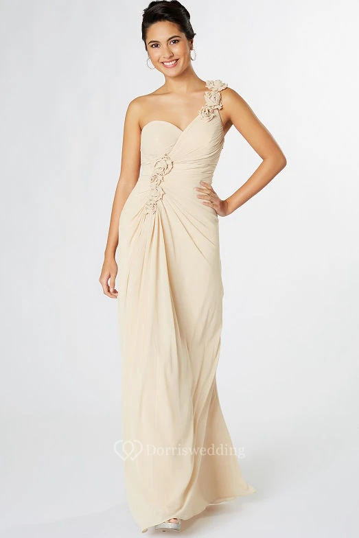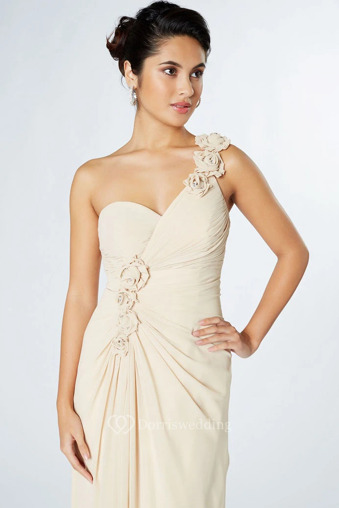 Sheath Sleeveless One-Shoulder Floral Chiffon Bridesmaid Dress