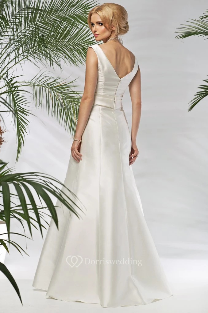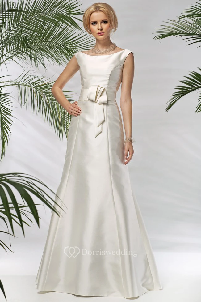 Sheath Sleeveless Scoop-Neck Bowed Long Satin Wedding Dress