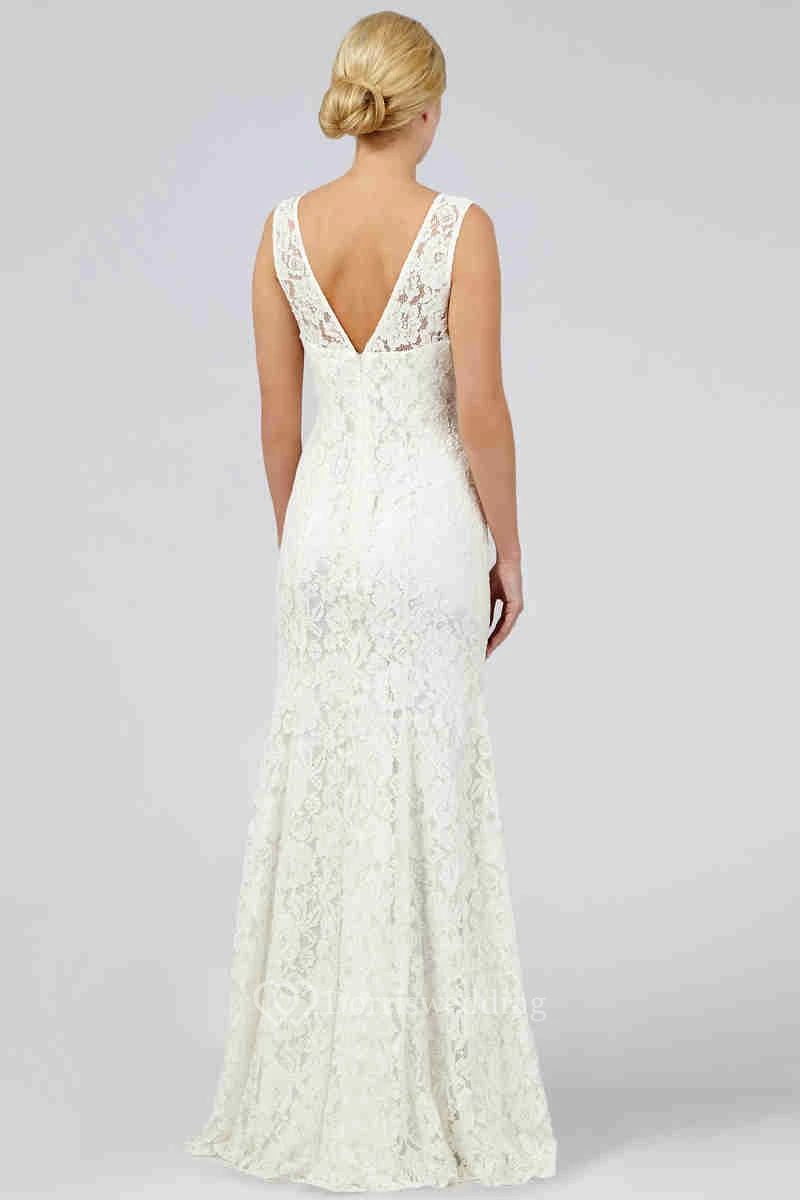 Sheath Sleeveless Scoop-Neck Floor-Length Lace Wedding Dress With V Back